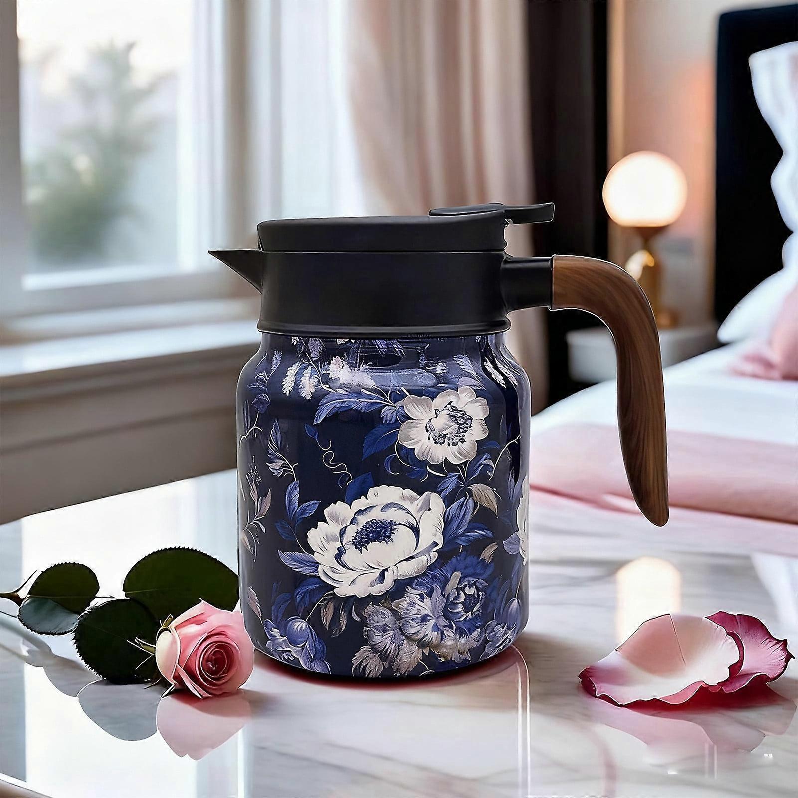 3-Pc Thermal Tea Pot Set w/ Handle & Built-in Infuser, 800ml Stainless Steel Vacuum-Insulated Infuser Pot, Flower Pattern