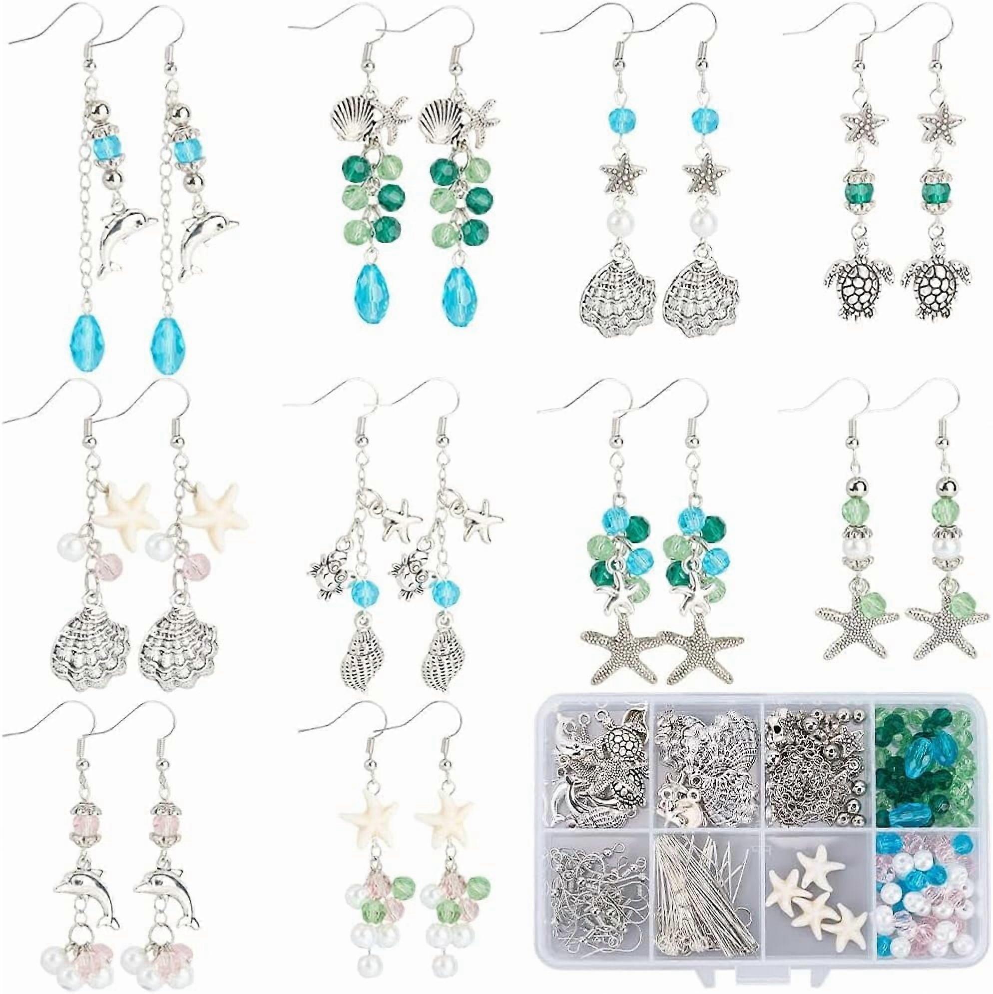 DIY Sea Earring Making Kit: 10 Pairs Silver Turtle Beads, Vintage Tibetan Style, Ocean/Beach Theme, Mixed Colors