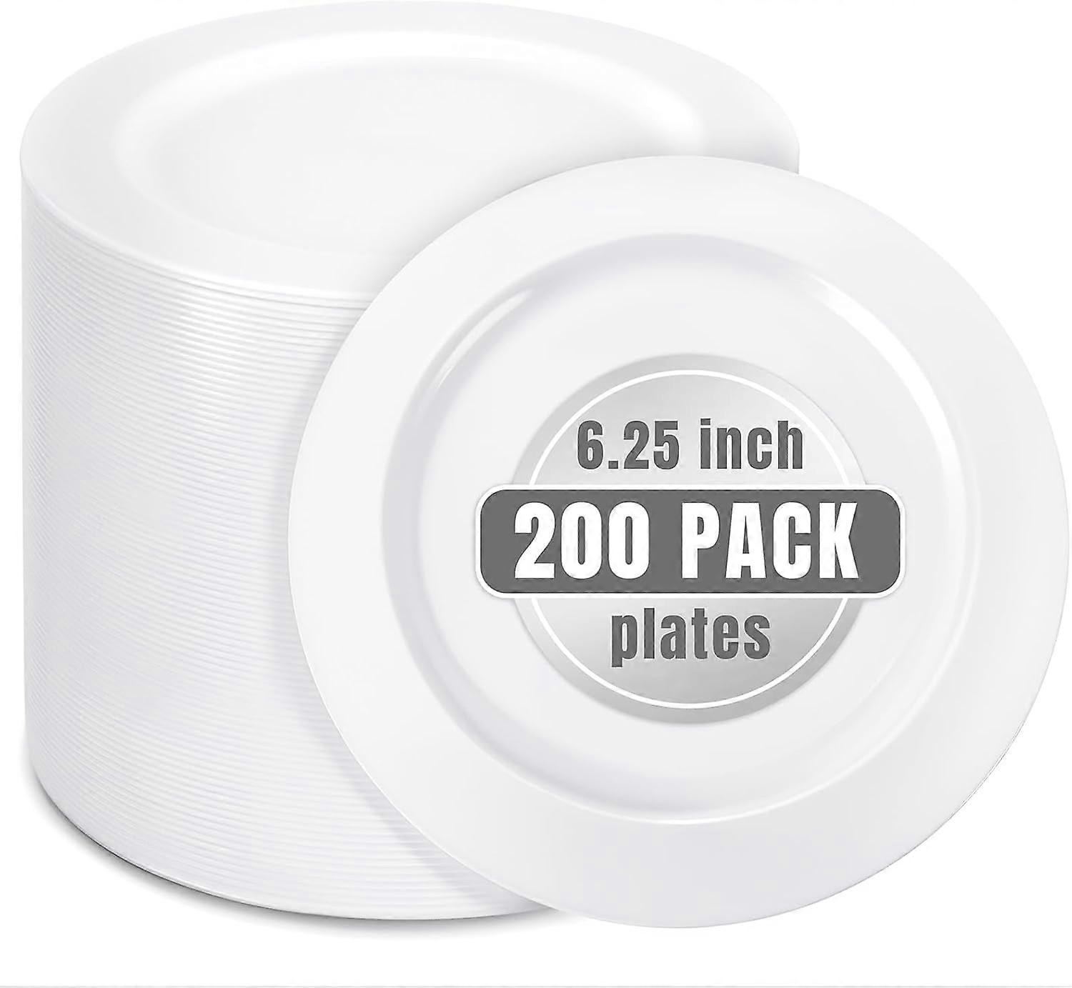 200PCS White Plastic Plates - 6.25inch Disposable Salad/Dessert/Appetizer/Small Cake Plates for Wedding & Party