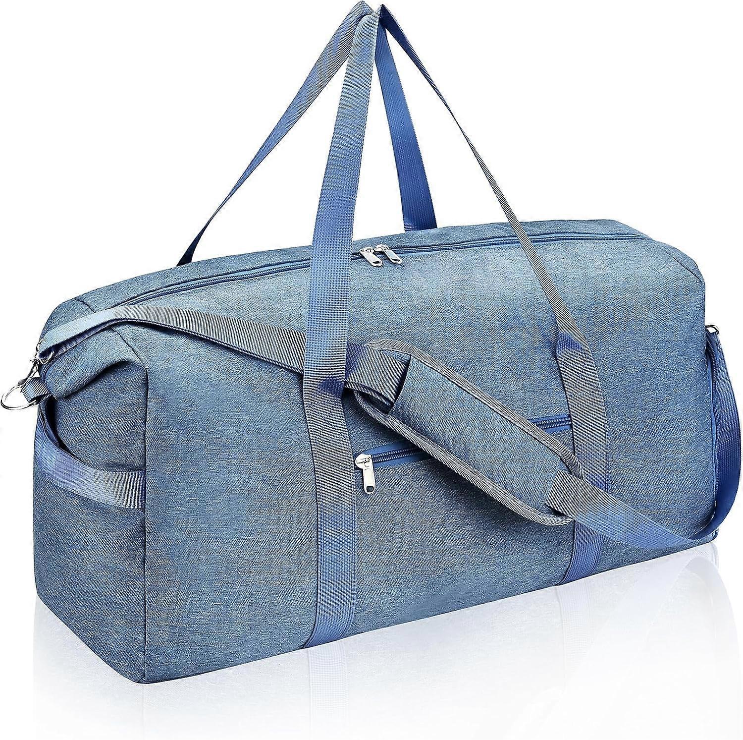 22x14x9in Airlines-Approved Foldable Travel Duffel Bag, 40L Weekender with Wet Pocket & Shoe Compartment – Blue
