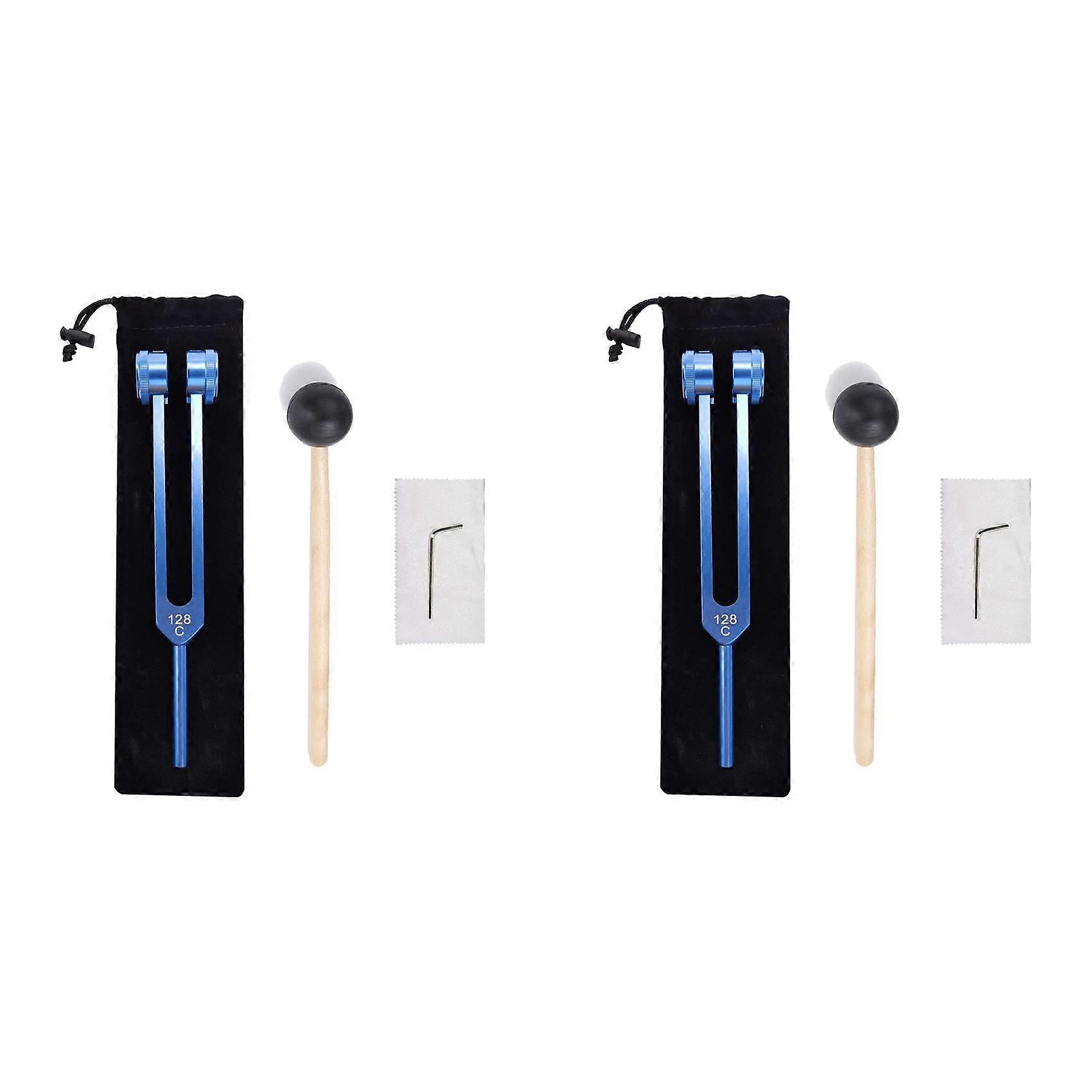 2X 128Hz Aluminum Alloy Tuning Fork with Hammers for Nervous System Testing Sound Healing Therapy Health Care
