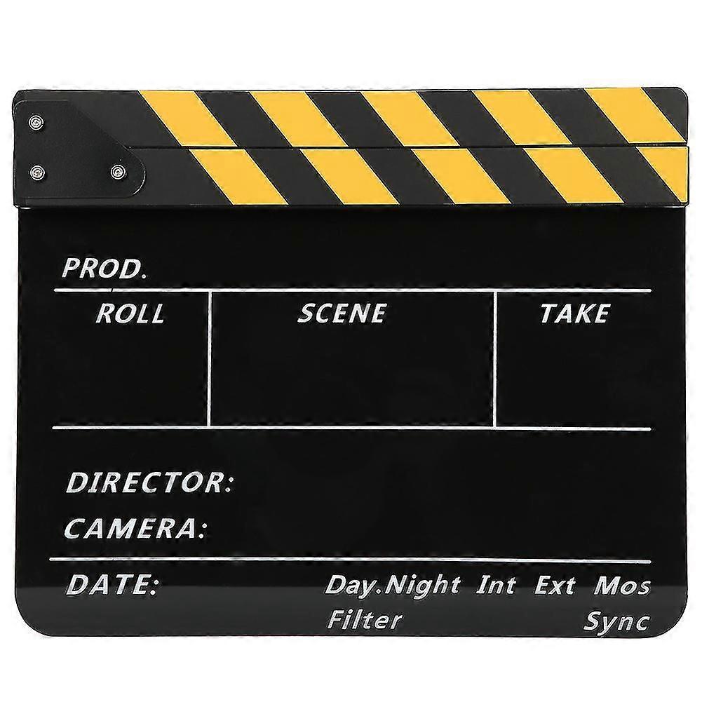 Acrylic Cinema Clapboard 30x25cm, Yellow Striped Blackboard for Film & TV Photography