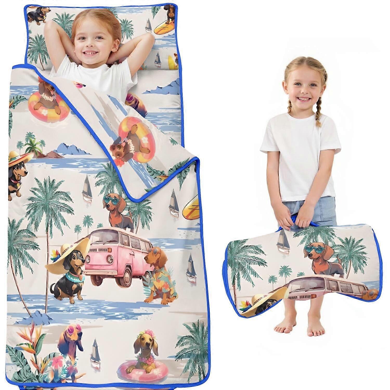 Dachshunds Tropical Beach Toddler Nap Mats for Kids Preschool,Sleeping Mat Bag or Kids,Toddler Sleeping Bag,Toddler Nap Mat or Daycare