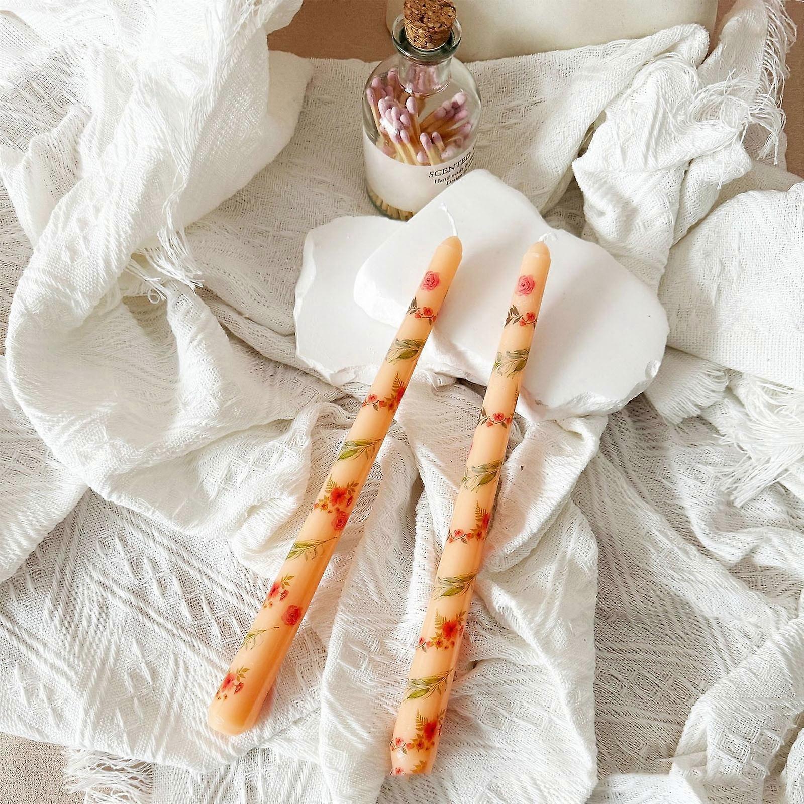 Long Rod Printed Candles 2-Pack | Romantic Wedding Decor, Odorless & Smokeless, Hand-Cast, Extended Burn Time | Compatible with Party, Dinner,