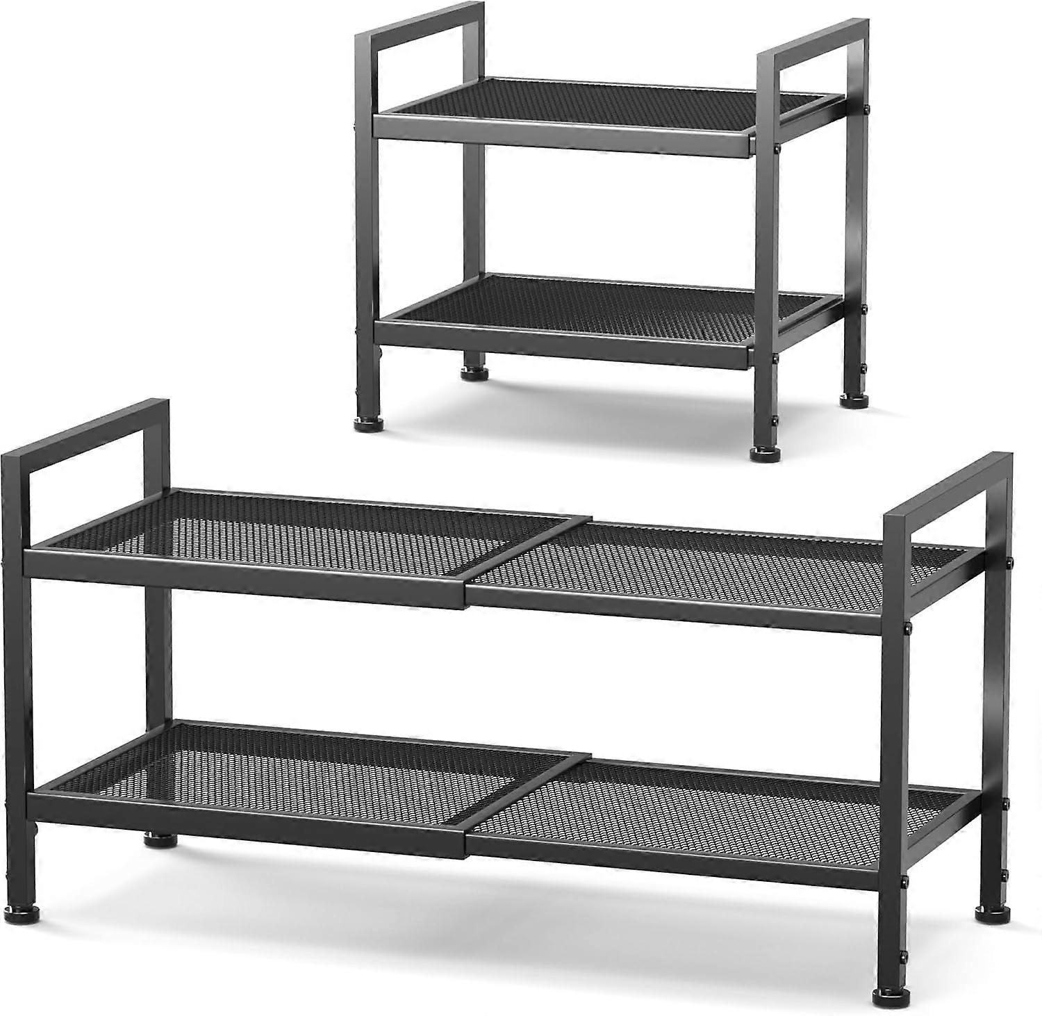 2-Tier Adjustable Shoe Rack Expandable Shelf Space-Saving Shoe Organizer for Entryway Closet Garage and Bedroom