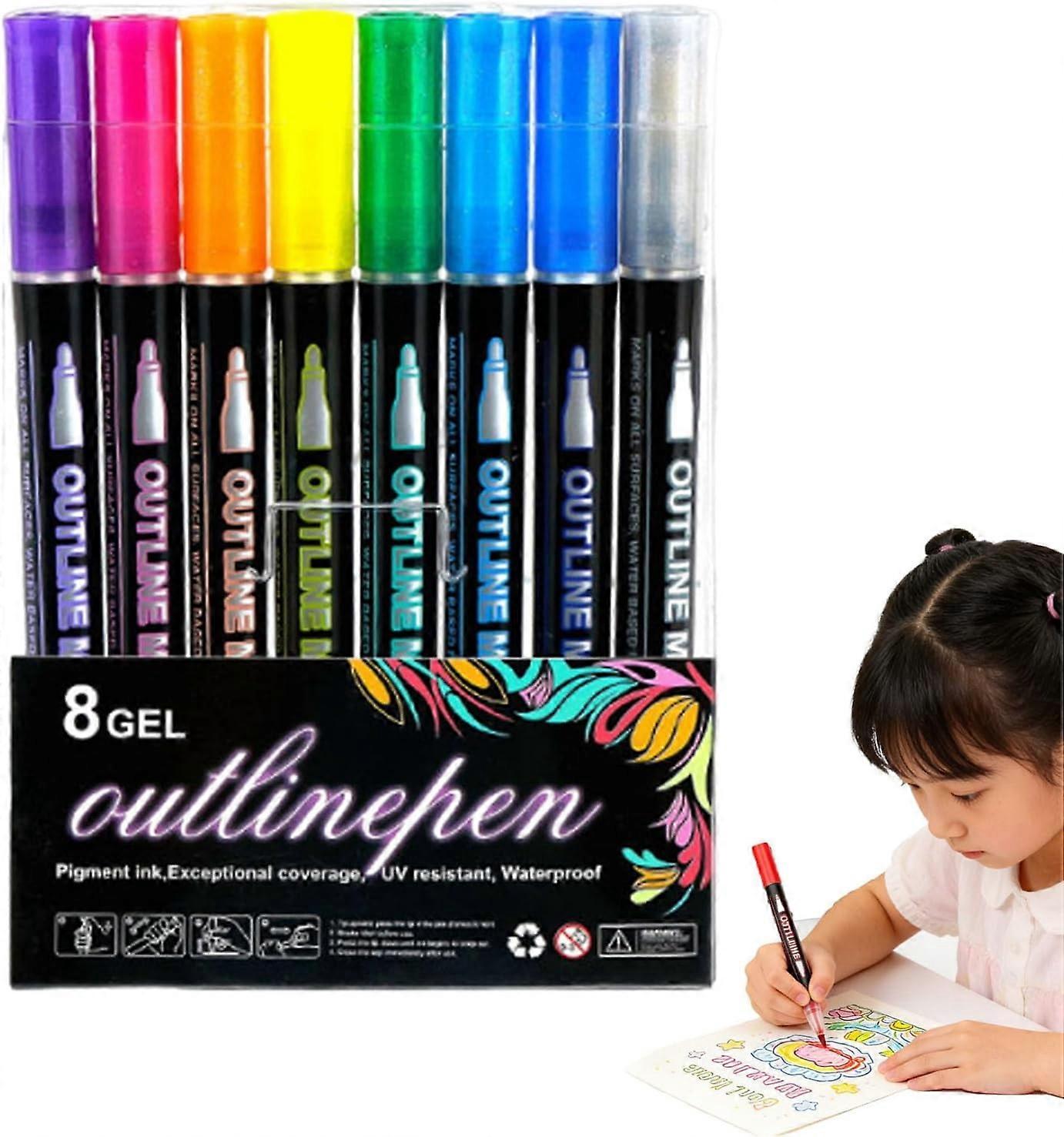 Dreamy Sparkle Dual-Line Contour Pen Set with Metallic Outline, Double Line Outline Art Pen, Quick-Dry Ink for Drawing, Coloring