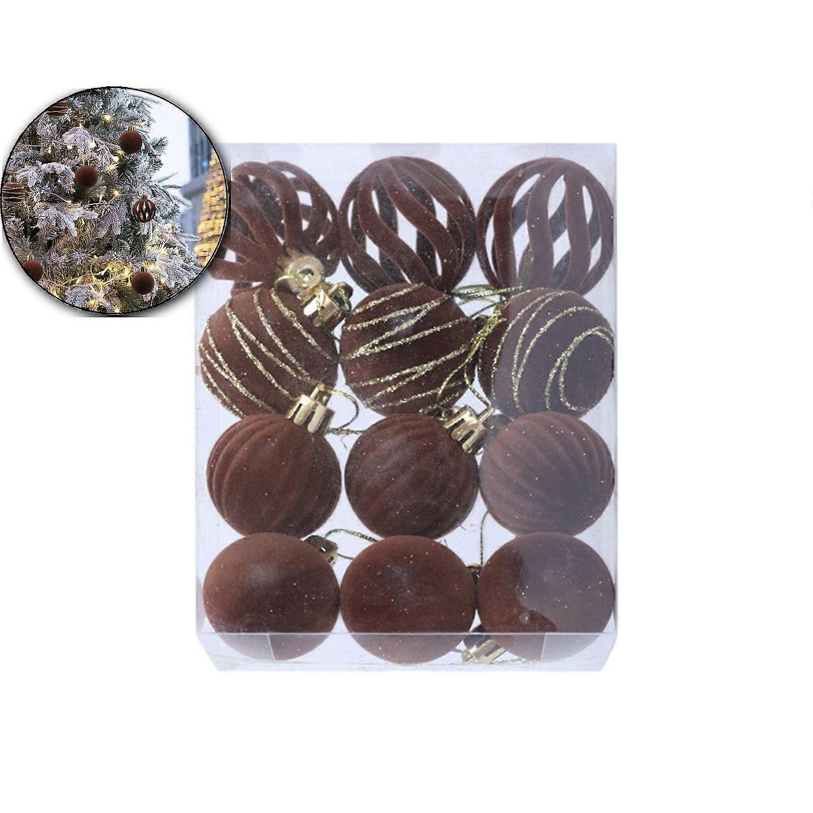 12pcs Small Flocked Velvet Christmas Ball Ornaments for Tree – Plastic Handmade Xmas Decor, Compatible with All Tree Types