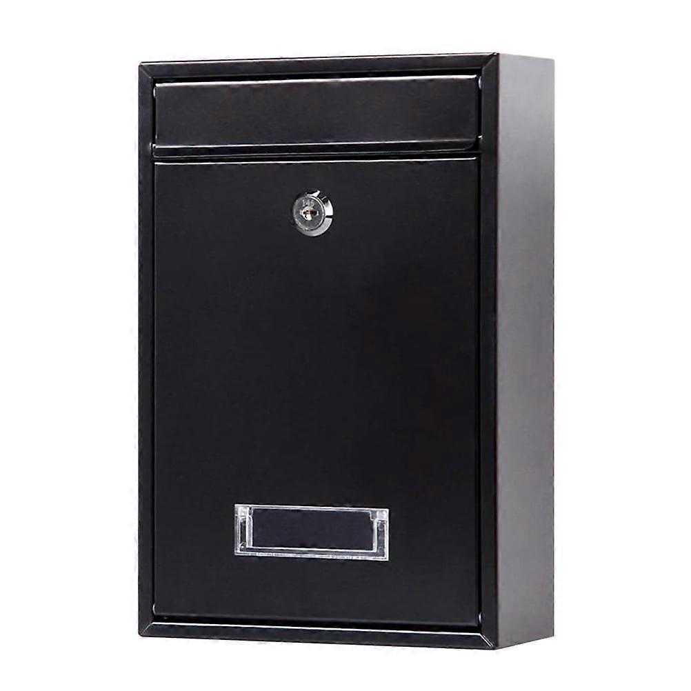 Wall-Mount Mailbox Metal Letter Box Black Outdoor Home Use Weather-Resistant Secure Mail Holder 1 Set