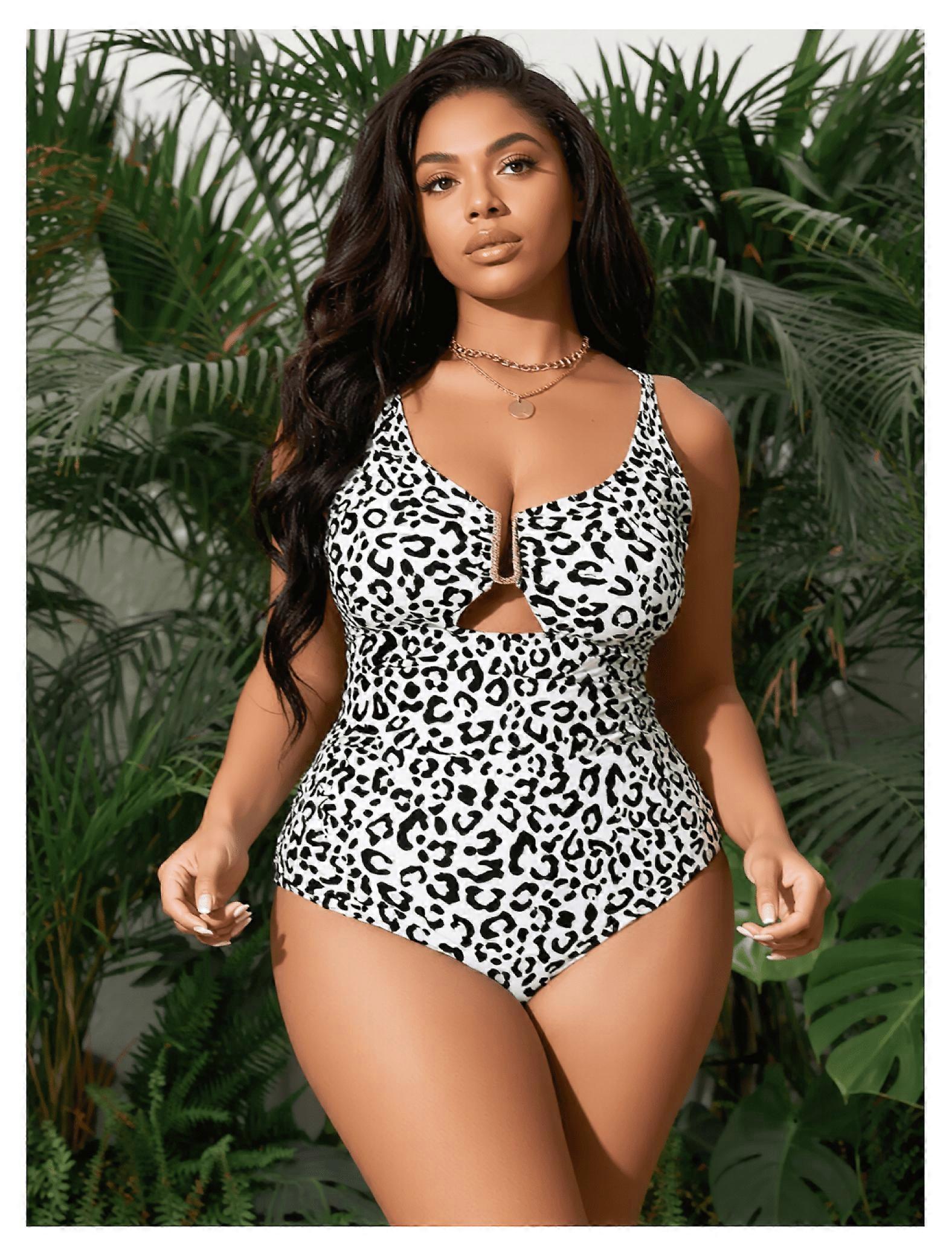 Leopard Print One-Piece Swimsuit for Women – Sexy Cutout, V-Neck, Beach & Pool Wear; Compatible with Summer Vacation