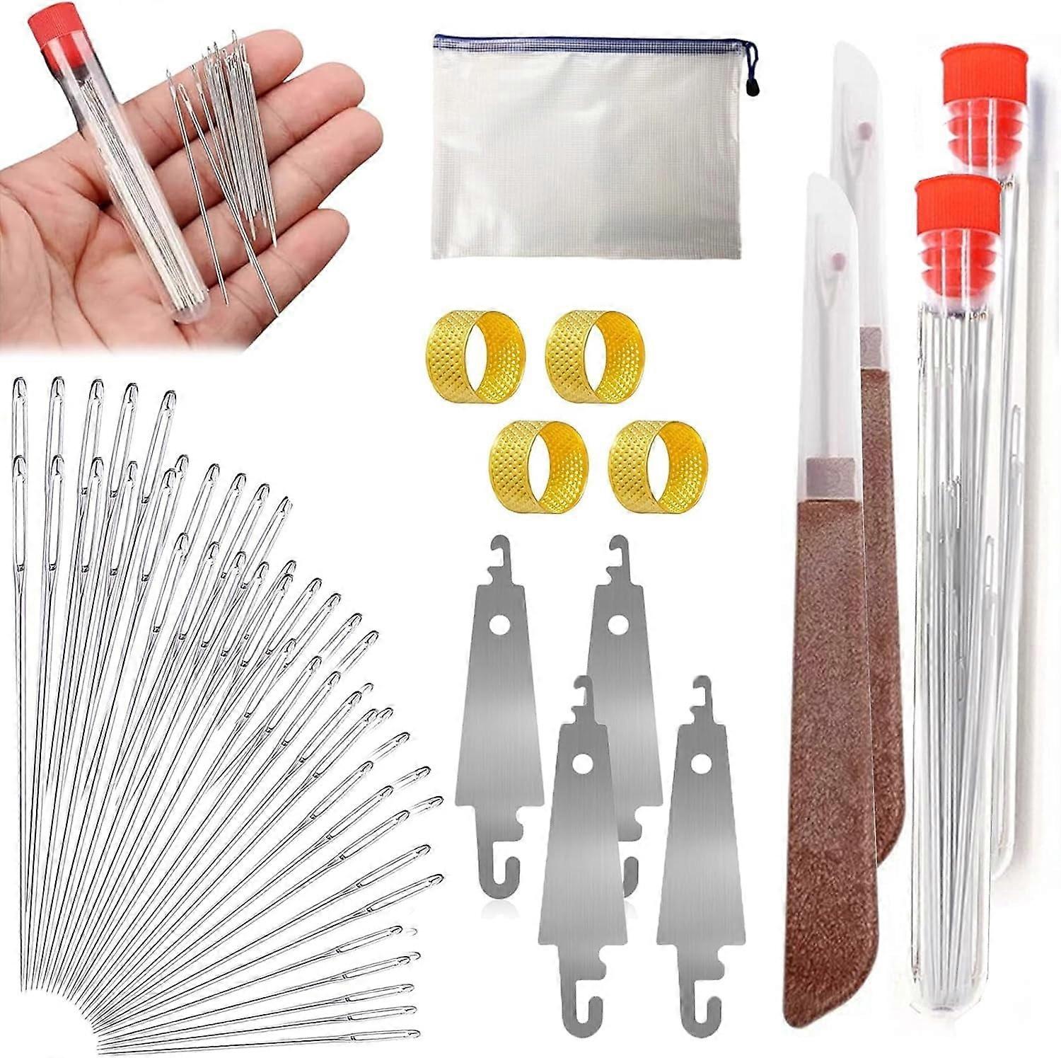 31PCS Sewing Tool Set with Big Eye Steel Needles, Stainless Steel Hand Sewing & Quilting Needles Kit (2PACK)