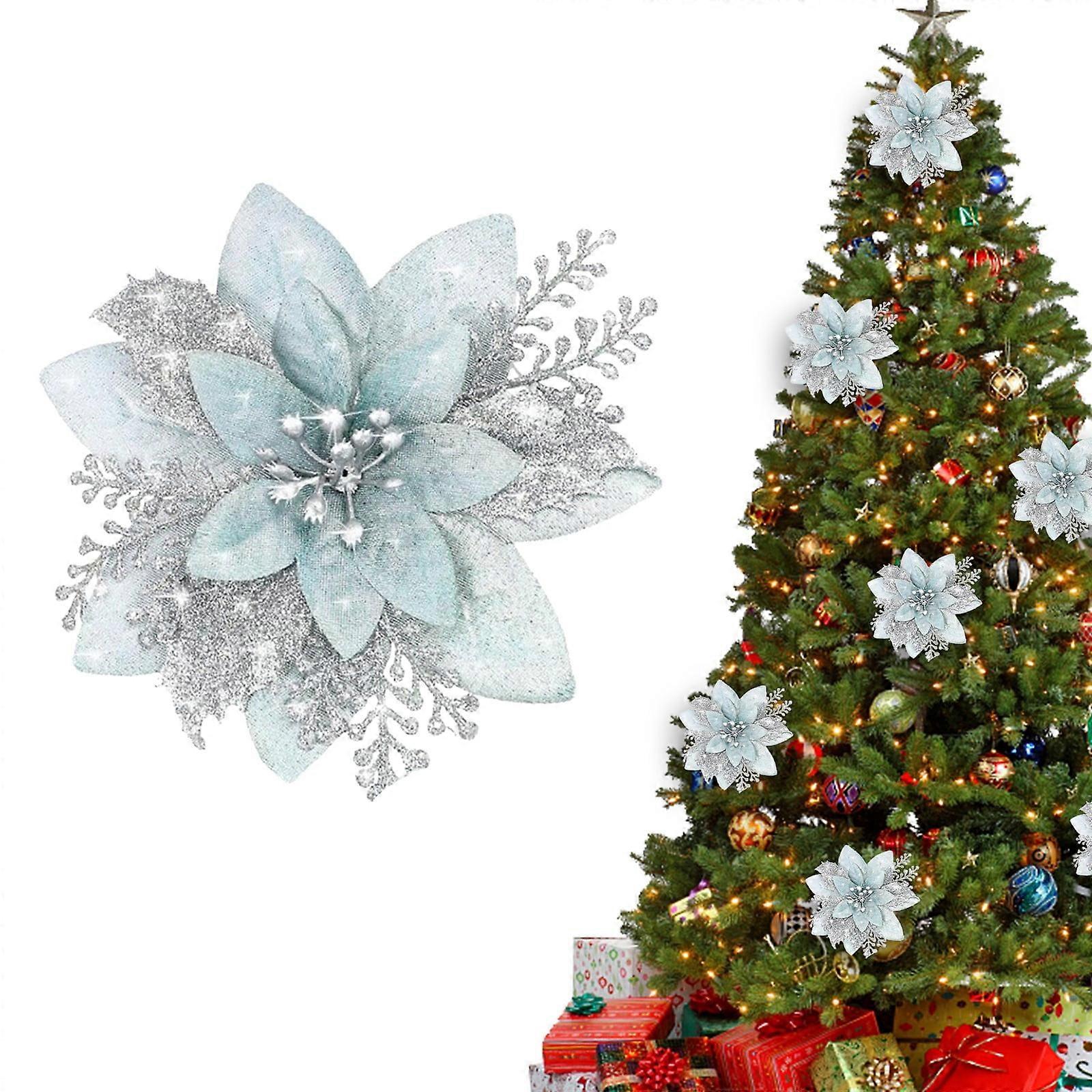 5.7" Glitter Poinsettia Artificial Flower with Clip for Xmas Tree, Wreath, Garland – Compatible with Home & Party Decor
