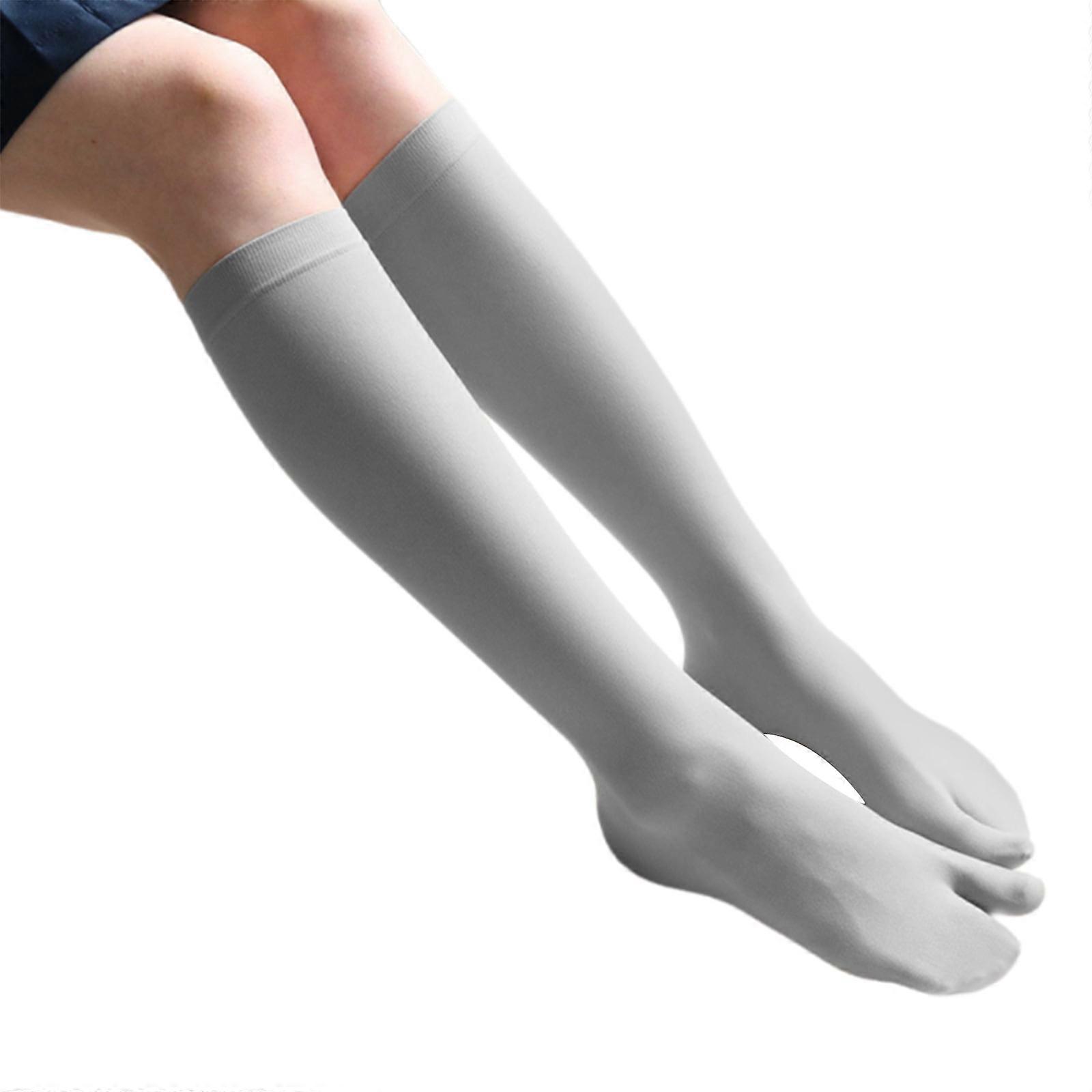 Women's Thin Silk Split Toe Over the Calf Socks Elastic Cuffs Knee Length Solid Color Two Toe Stockings For Daily Wear