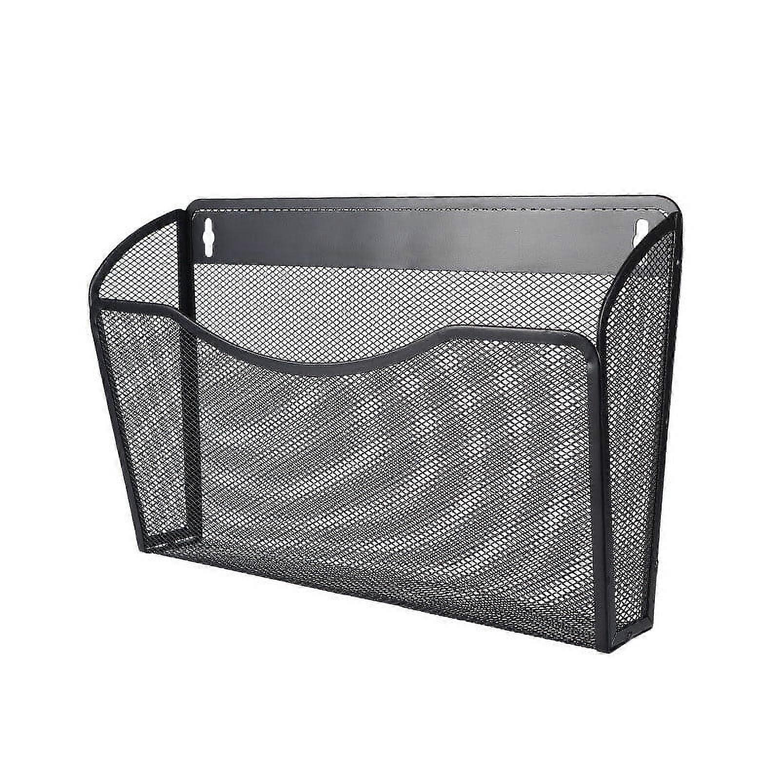 Office Single Pocket Wall File Holder Mesh Bin Hanging Organizer,Black, 1Pcs
