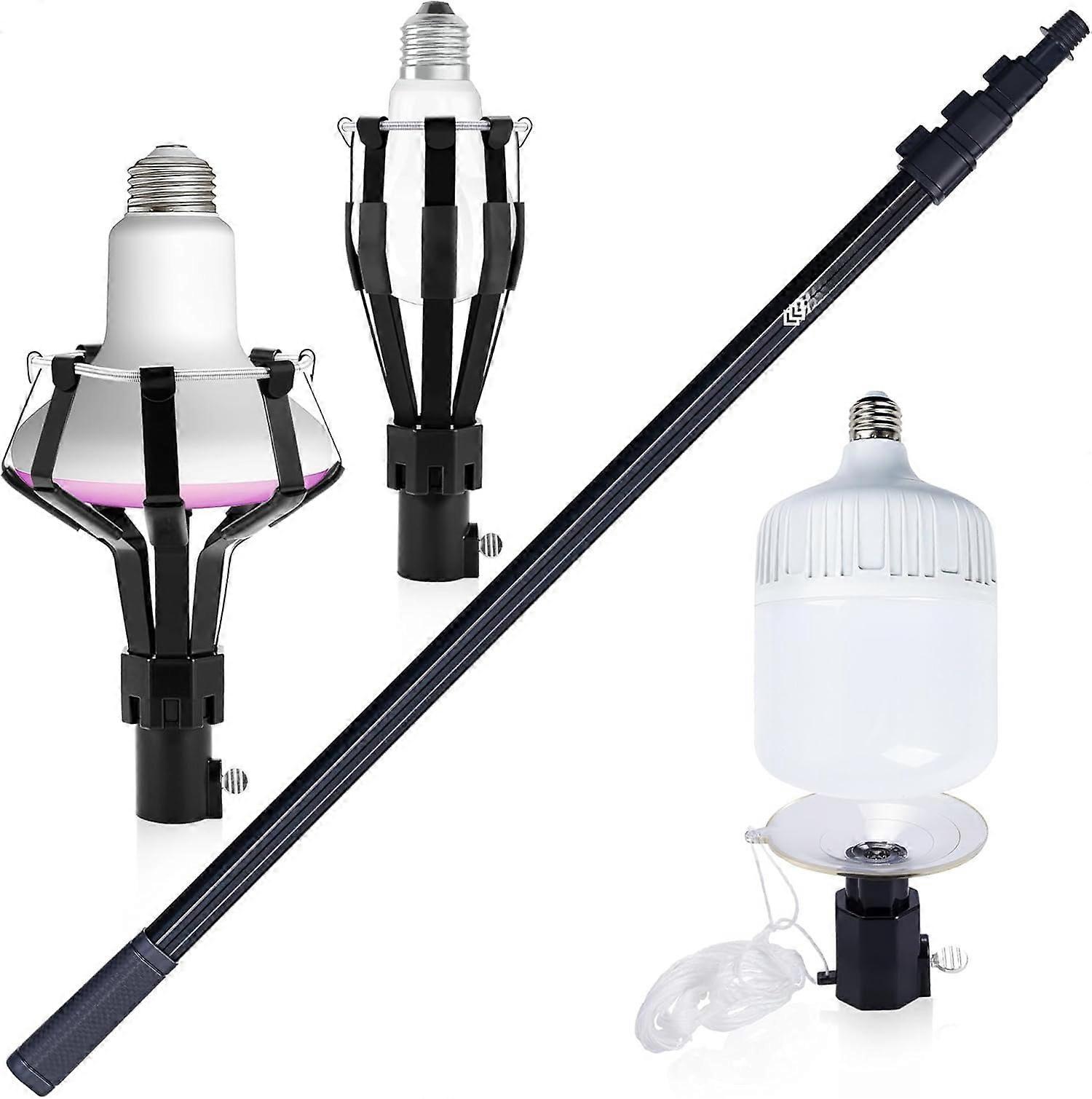 Gen2 12Ft Extendable Light Bulb Changer Pole (18Ft Reach), Telescopic with Gripper for Chandeliers – Jet Black, compatible with standard bulbs