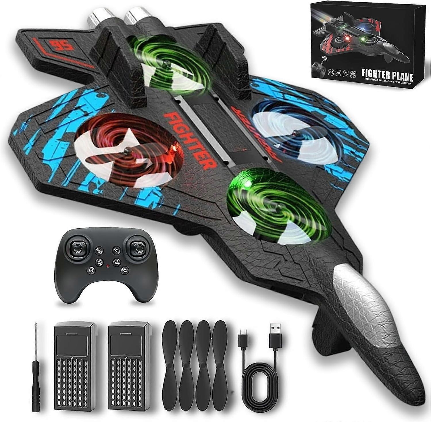 RC Jet Toy with 360° Flips & LED Lights, Compatible with Kids & Adults, Foam RC Airplane Gift (Blue)