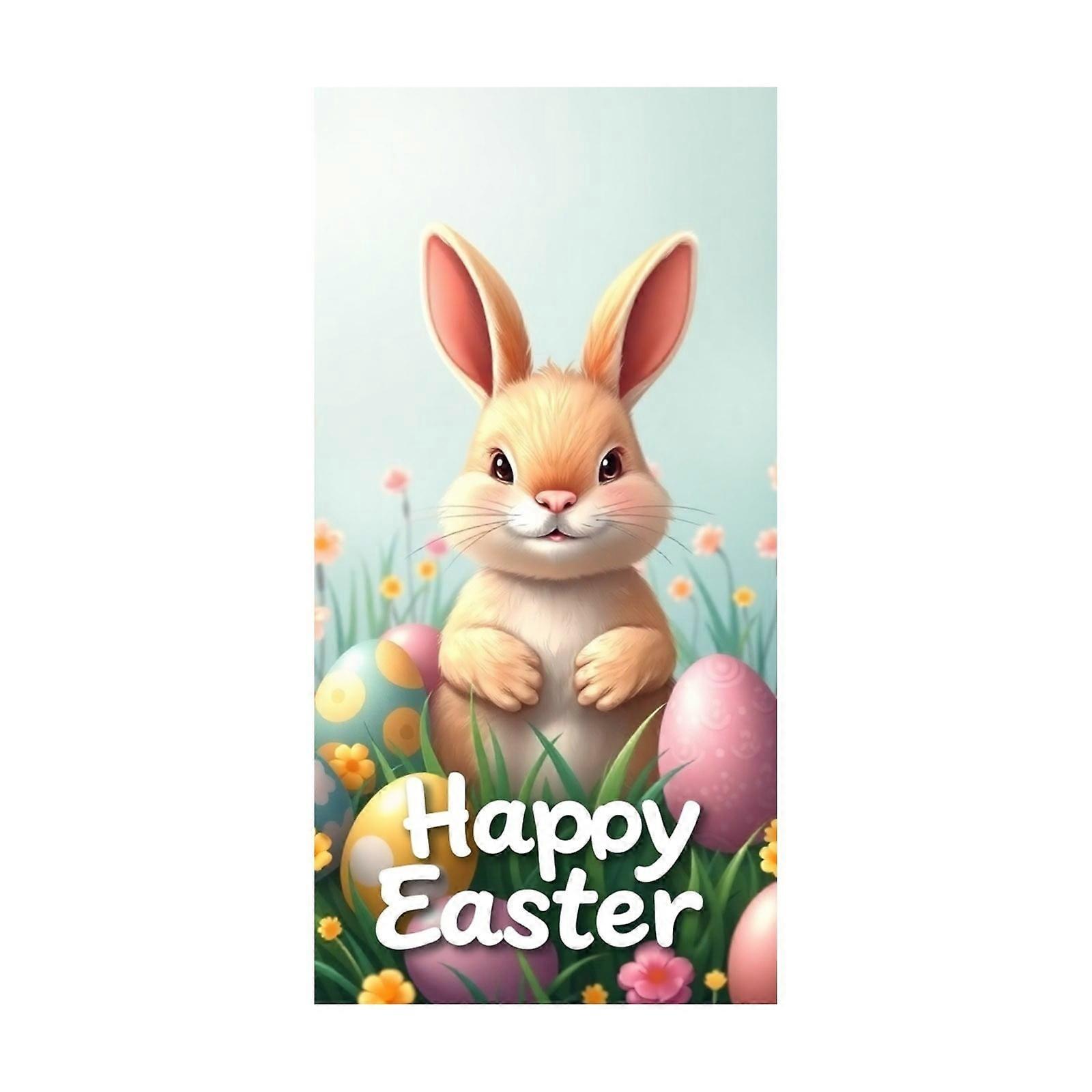 Happy Easter Bunny Door Cover Decorations Bunny Easter Eggs Door Banner 35.4 x 78.7 inch Multicolored Polyester Washable