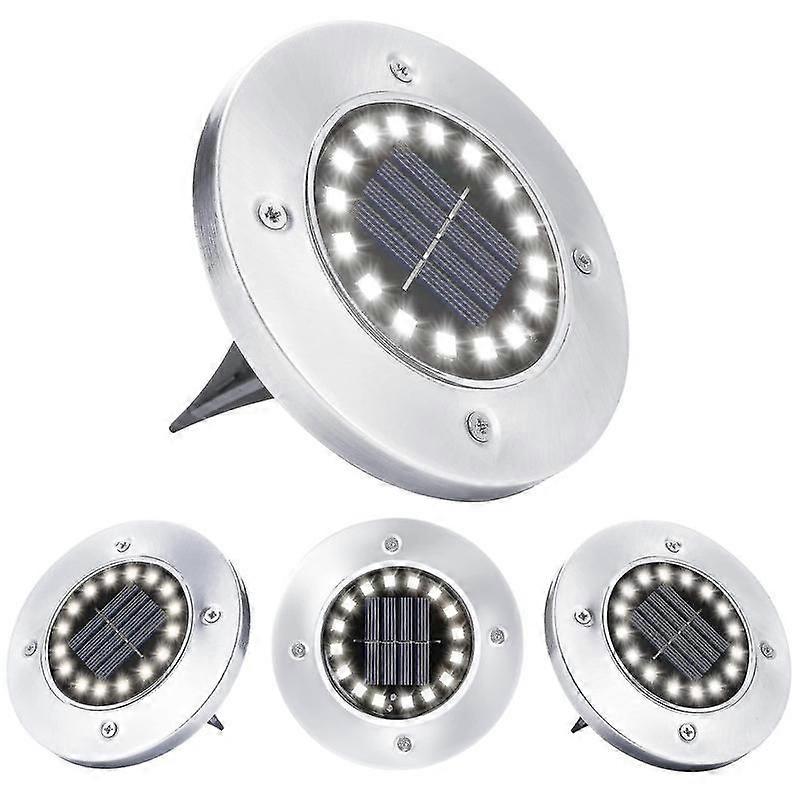 Upgraded Solar Spot Lights 4 Pack: Unlike other solar lights on the market, each of our solar led lights comes with 16 LEDs. This means that they will provide you with brighter and adequate lighting at night. Perfect for decorating your garden, patio, landscaping, sidewalk, lawn and other scenarios.Easy to Install and Use: These solar ground lights are cordless and dont require any power connections or complicated tools. Simply install the included spikes on the underground lamp and bury it where you want. They are almost level with the ground and do not obstruct your view. Very handy for lawn mowers to remove weeds. Note: Remember to turn on the ON button on the back of the light before use.Intelligent Light Control: This solar street lights has a built-in light sensor, which can control the light on/off by detecting the light intensity. They automatically turn on at night or in the dark, turn off during the day and recharge by absorbing sunlight. It takes 6-8 hours to fully charge and can work for 8-10 hours at night. It is completely energy-saving and convenient to use.IP65 Waterproof and Durable: These solar recessed lights are IP65 waterproof which can prevent water splashing and be used in rainy days. Made of high quality PP material and stainless steel, they are very durable and can work perfectly in any weather (even work in very cold or very hot conditions). You dont have to worry about rain, snow, frost and hail. Perfect for outdoor use.Eye-catching Outdoor Decoration: These solar ground lights can not only provide night lighting, but also create a warm and romantic atmosphere that will make your garden unique. Ideal for decorating gardens, walkways, patios, paths, courtyards, lighting trees, floral decorations, marking lawns, yards and driveways. If you have any questions about these products, please feel free to contact us, we will provide you with a satisfactory solution within 24 hours.Auto on and off and energy saving: built-in light sensor, these outdoor solar lights can absorb sunlight during the day. Then they will turn on automatically at night or when it is dark. You dont have to worry about wasting electricity by forgetting to turn off the lights.IP65 Waterproof: These solar led spotlights are IP65 waterproof and can withstand any weather. High quality stainless steel design makes them strong and durable to use Super ideal for outdoor use. No need to worry about rain or snow at allMake Your Garden Unique: Each solar lights with 16 LEDs, these solar lights provide you with brighter light. Solar powered, compact in size, they are especially perfect for those who dont have the extra space to pack for outdoor lighting decor. They are a great decoration for your garden. Perfect for gardens, driveways, lawn, hallway, patios, etc.Note: Charging/working time will be affected by sunlight. And the brightness of the lamp is related to whether the sunlight is sufficient. Remember to turn the ON on the back of the underground light.Features:Light source type: LEDColor LED Light Rating: Cool WhitePower Source: Solar PoweredSolar Panel: 2V/100MAWaterproof: IP65 Material: PP plastic + stainless steelProduct size: 11.5 * 13cm / 4.5 * 5.1inCharging time: 8 hours Working Time: 8-10 hoursPackage Included:4 * Solar Lights8 * Spikes 1 * User Manual
