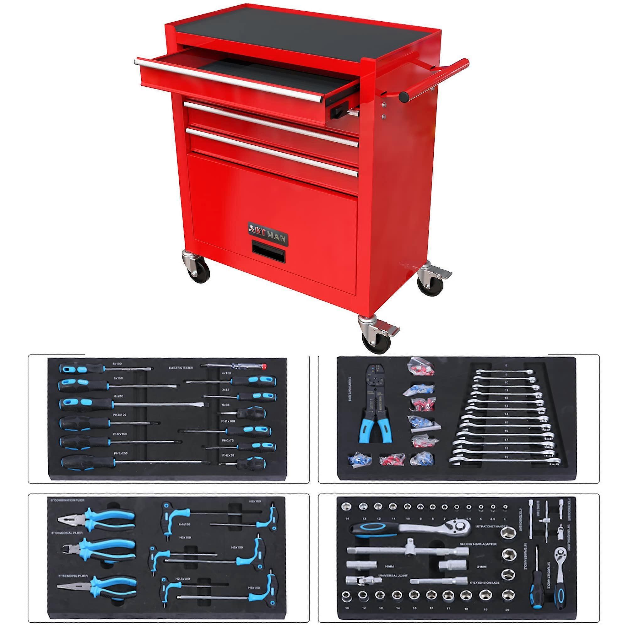 Red 4Drawer Rolling Tool Cabinet with Wheels, Durable Steel Tool Chest for Garage Mechanics