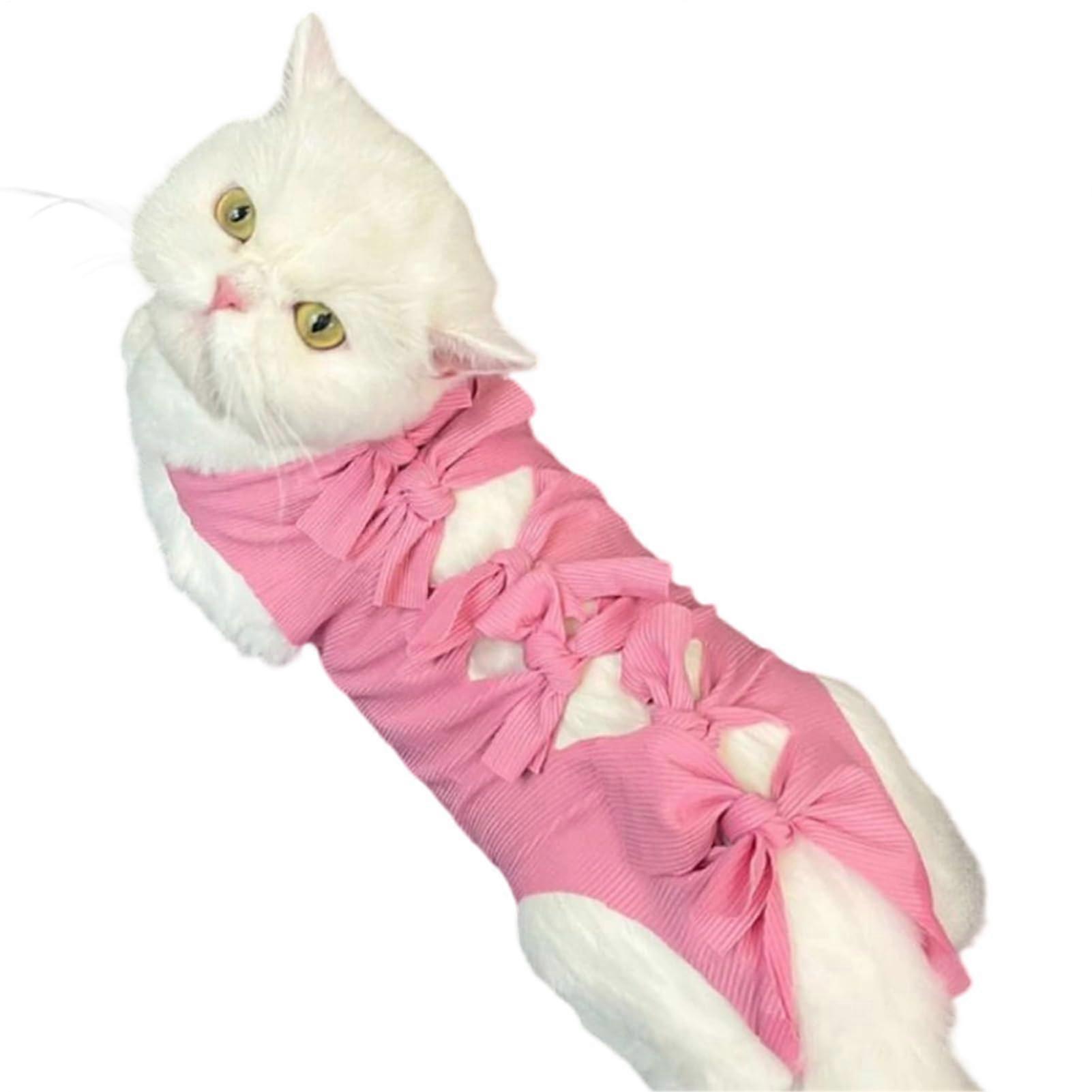 Cat Recovery Suit for After Surgery Breathable Fabric Adjustable Fit Wound Protection Pink L