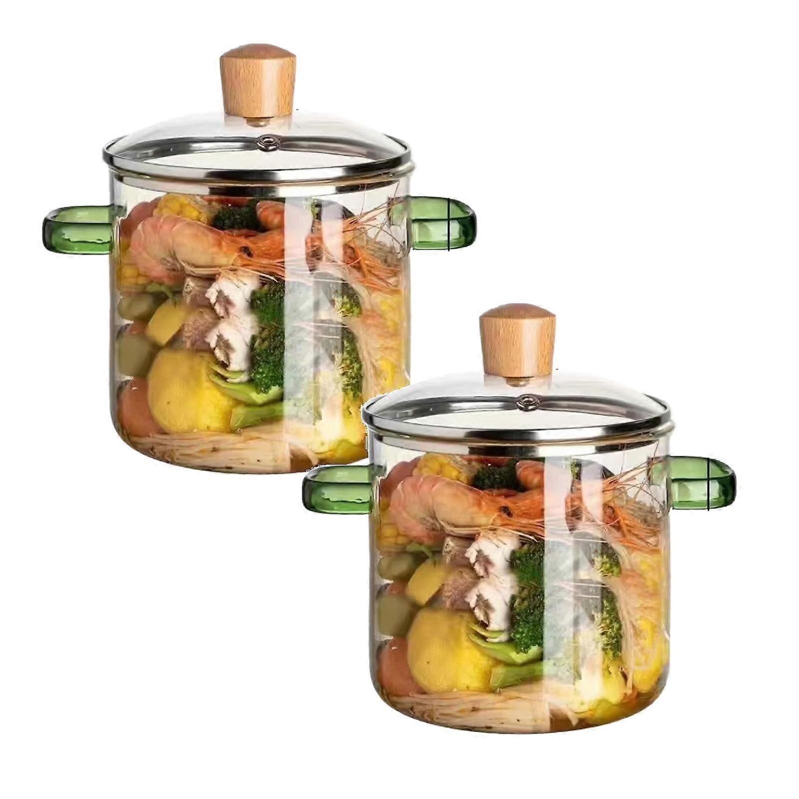 2-Pack Clear Borosilicate Glass Pots (1.6L/2.3L) with Lids & Handles – Stovetop-Safe, Easy-Clean Simmer Pots for Soup, Milk, Porridge, Pasta;