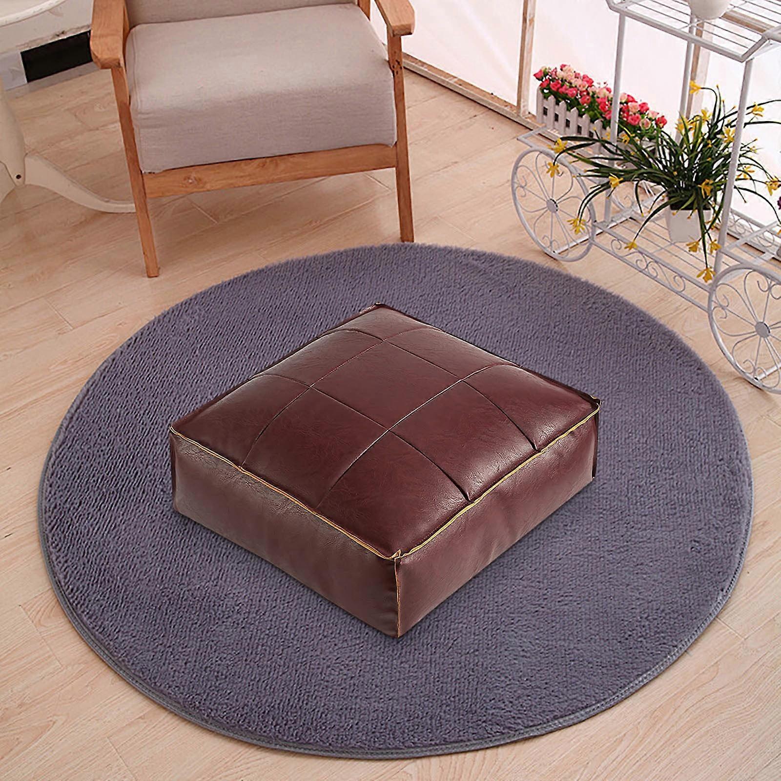 Faux Leather Ottoman Pouf Cover 17.7" (45x45x15cm), Waterproof Moroccan Footstool for Indoor/Outdoor, No Filler, with Storage – Compatible with XXX