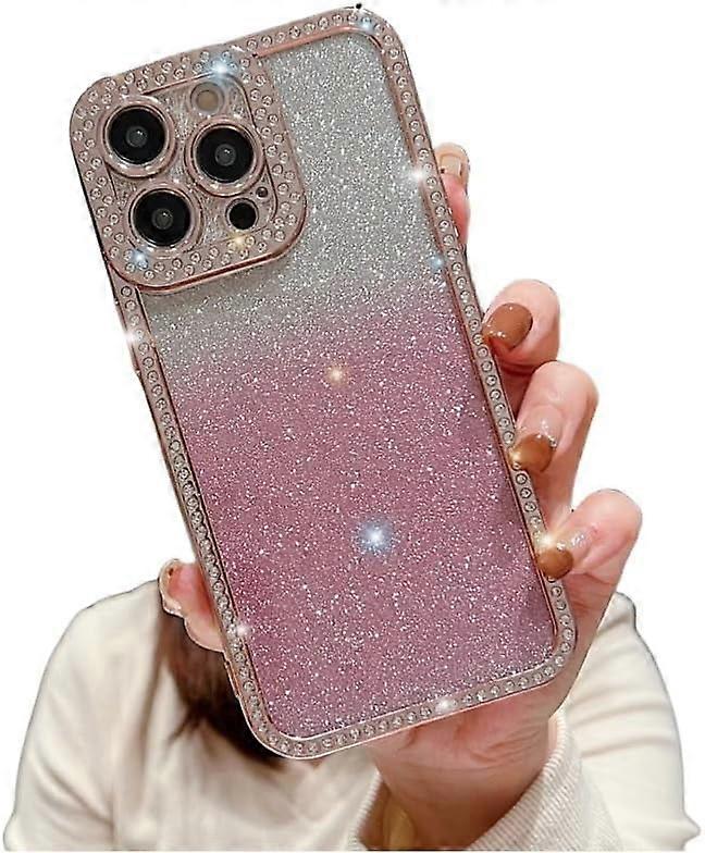 Pink Electroplating Rhinestone Glitter Phone Case, Drop-Proof, compatible with iPhone 15/14/13/12/11 Pro Max Plus (compatible with iPhone 12 Pro Max)