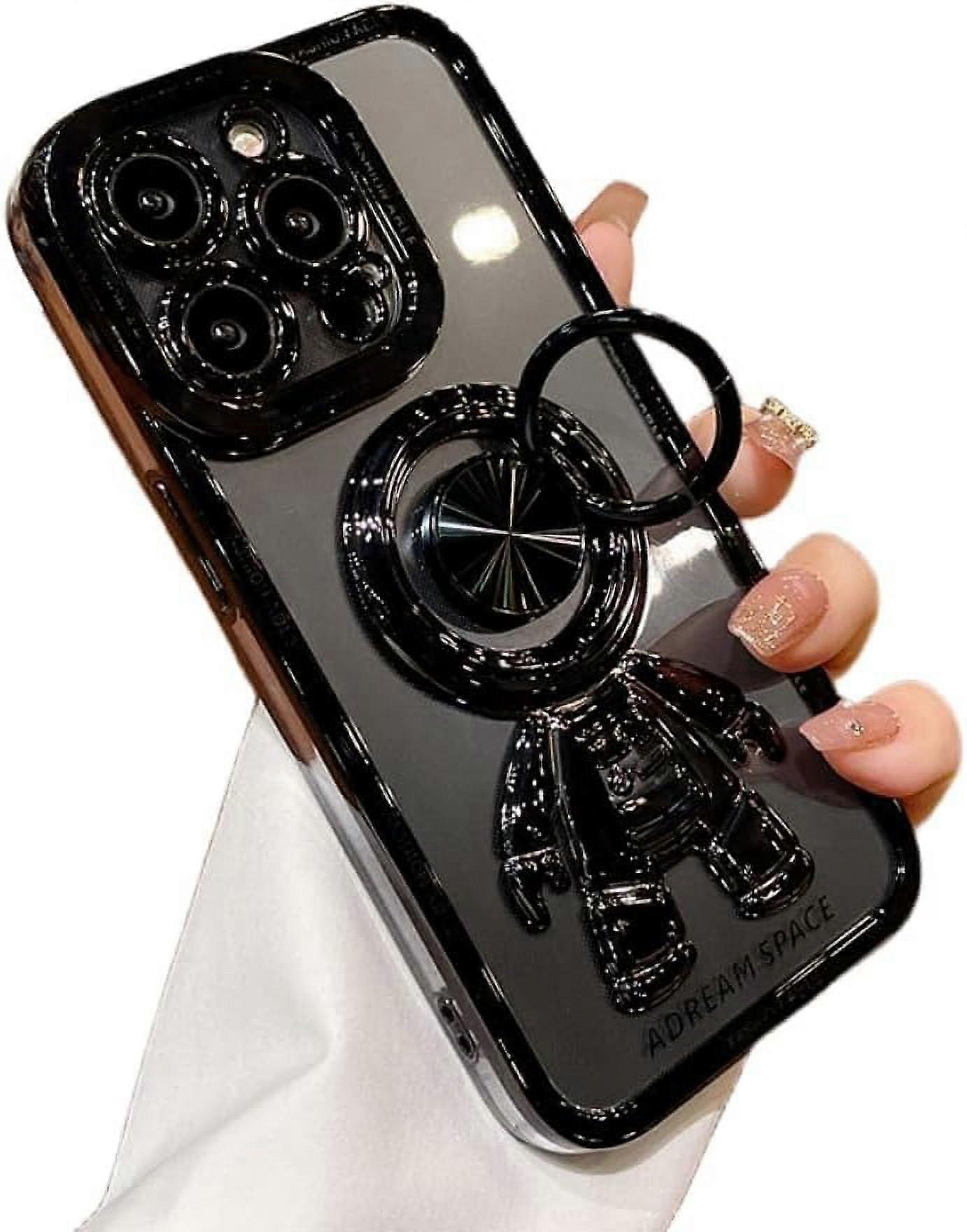 Electroplated Astronaut Ring Phone Case w/ Invisible Stand, Gradient Glitter, Drop-Proof — compatible with iPhone 15/14/13/12/11 Pro Max, XS, XR, X