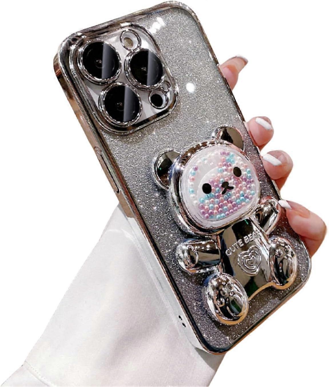 Gradient Glitter Bead Bear Phone Case with Hidden Stand, Silicone, Cute Cartoon Style – compatible with iPhone 14/13/12/11 Pro Max Plus XS XR 7 8 SE
