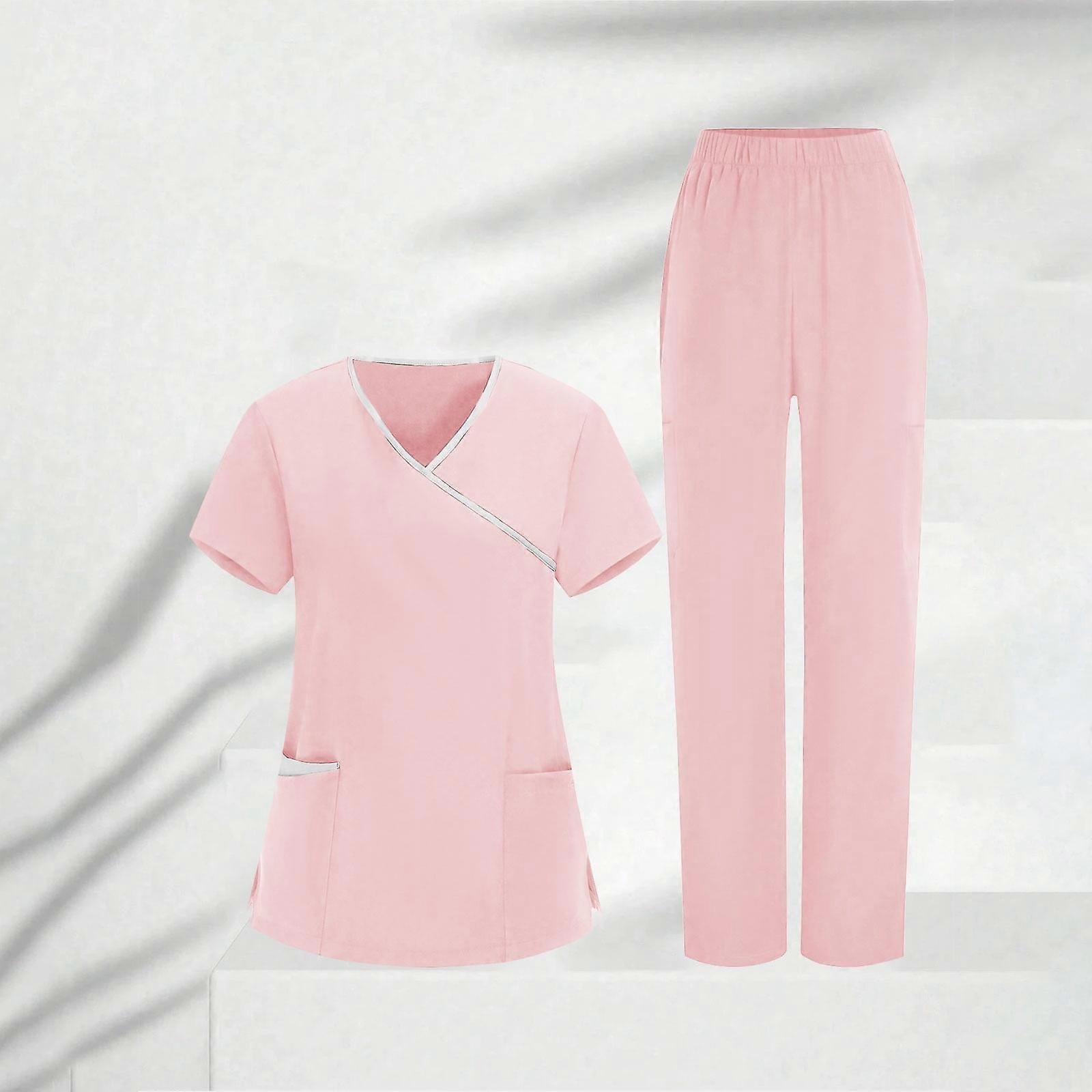 asdoklhq Scrubs for Women Cozy Fit Women's Nurses Sets Tunic Uniform Clinic Carer V-Neck Protective Clothing and Pants Set Pink S