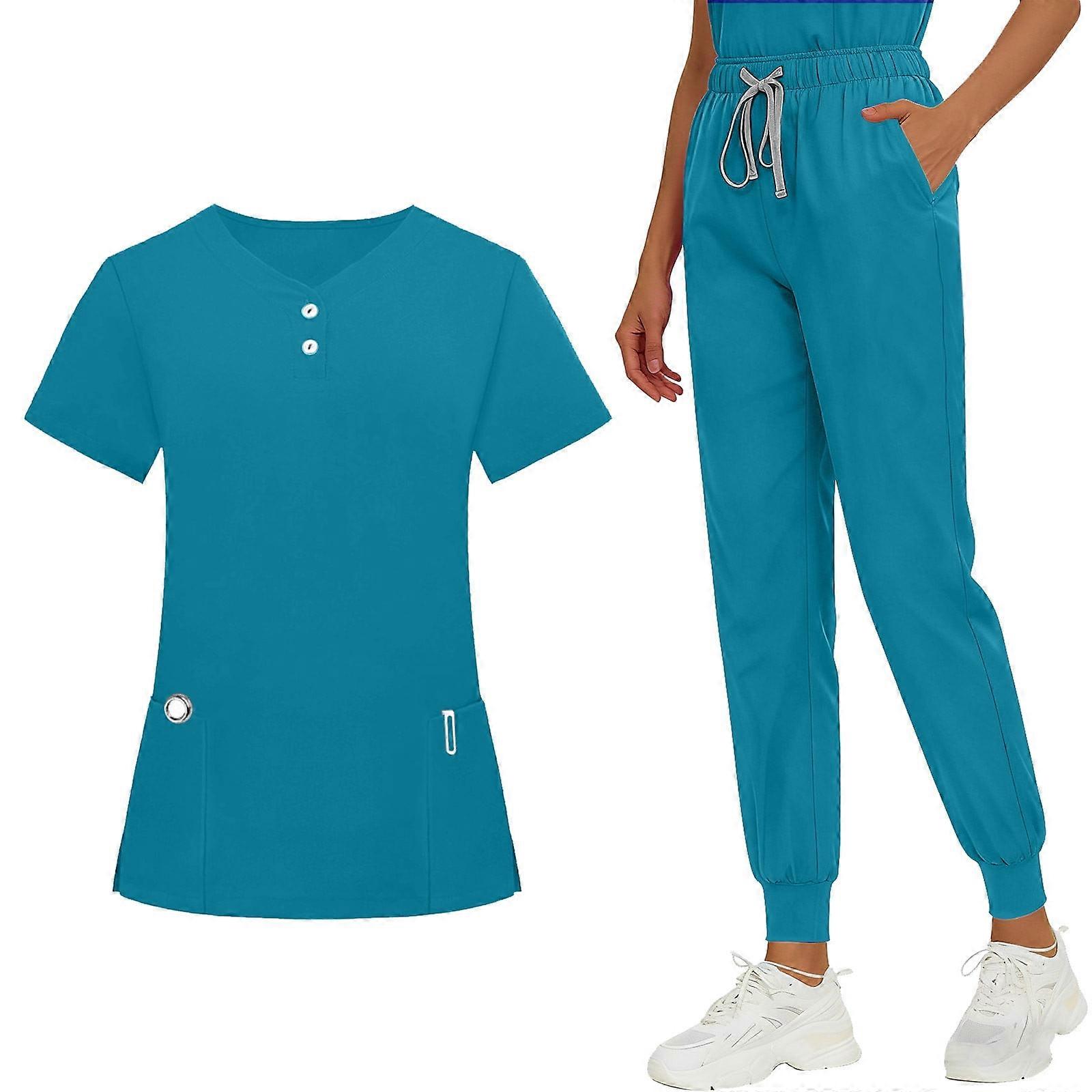 Cozy Fit Women's Solid Scrubs Set – Mint Green V-Neck Short Sleeve Top & Drawstring Joggers with Side Slit Pockets, 2X, compatible with healthcare