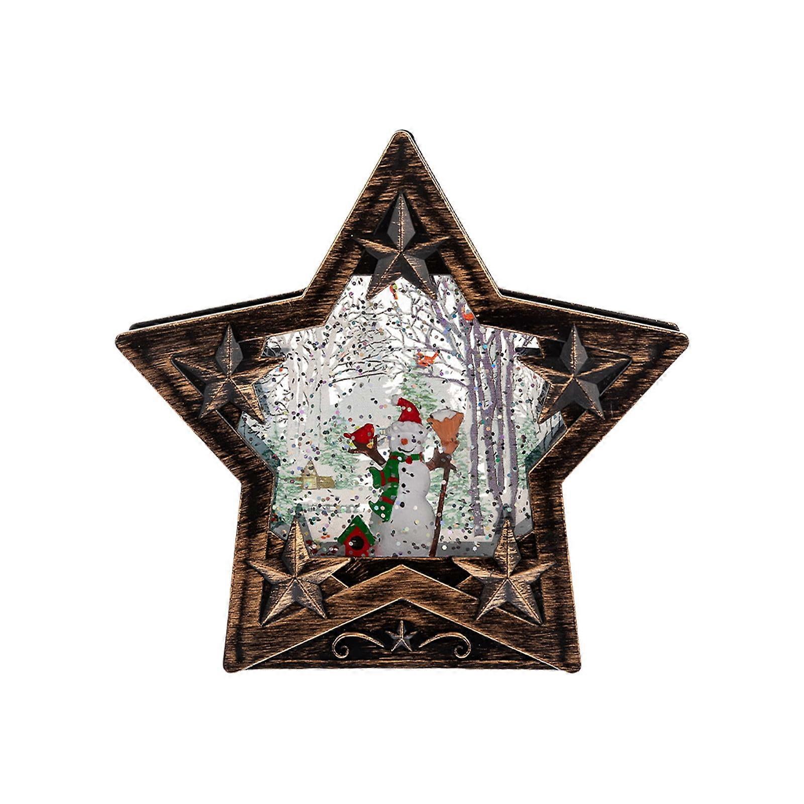 Pentagram Christmas Snow Globe Lantern, Battery-Operated Snowman & Tree Scene, Glittering Hanging Water Lantern – Compatible with Home Decor