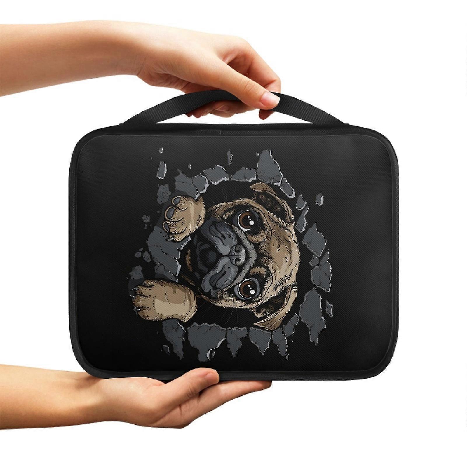 3D Pug Dog Print Bible Case for Women Men Bible Cover Bible Carrying Case Large Bible Bag with Zippers and Handle Sturdy Bible Protective Handbag