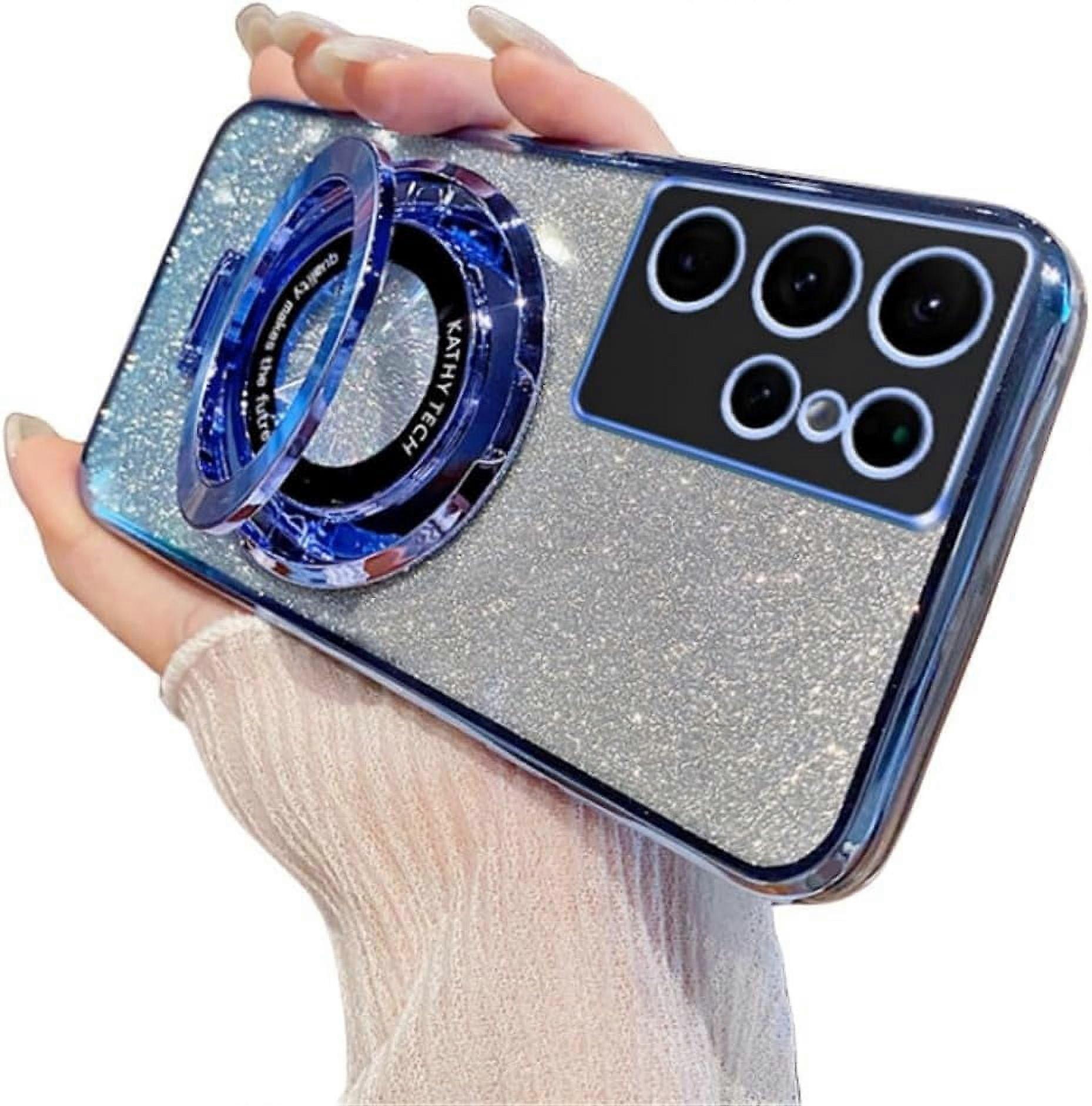 Gradient Electroplating Glitter Phone Case with Hidden Finger Ring Holder for Samsung Galaxy S24/S23/S22/S21/S10 Ultra/Plus/FE (Blue, S24 Ultra)