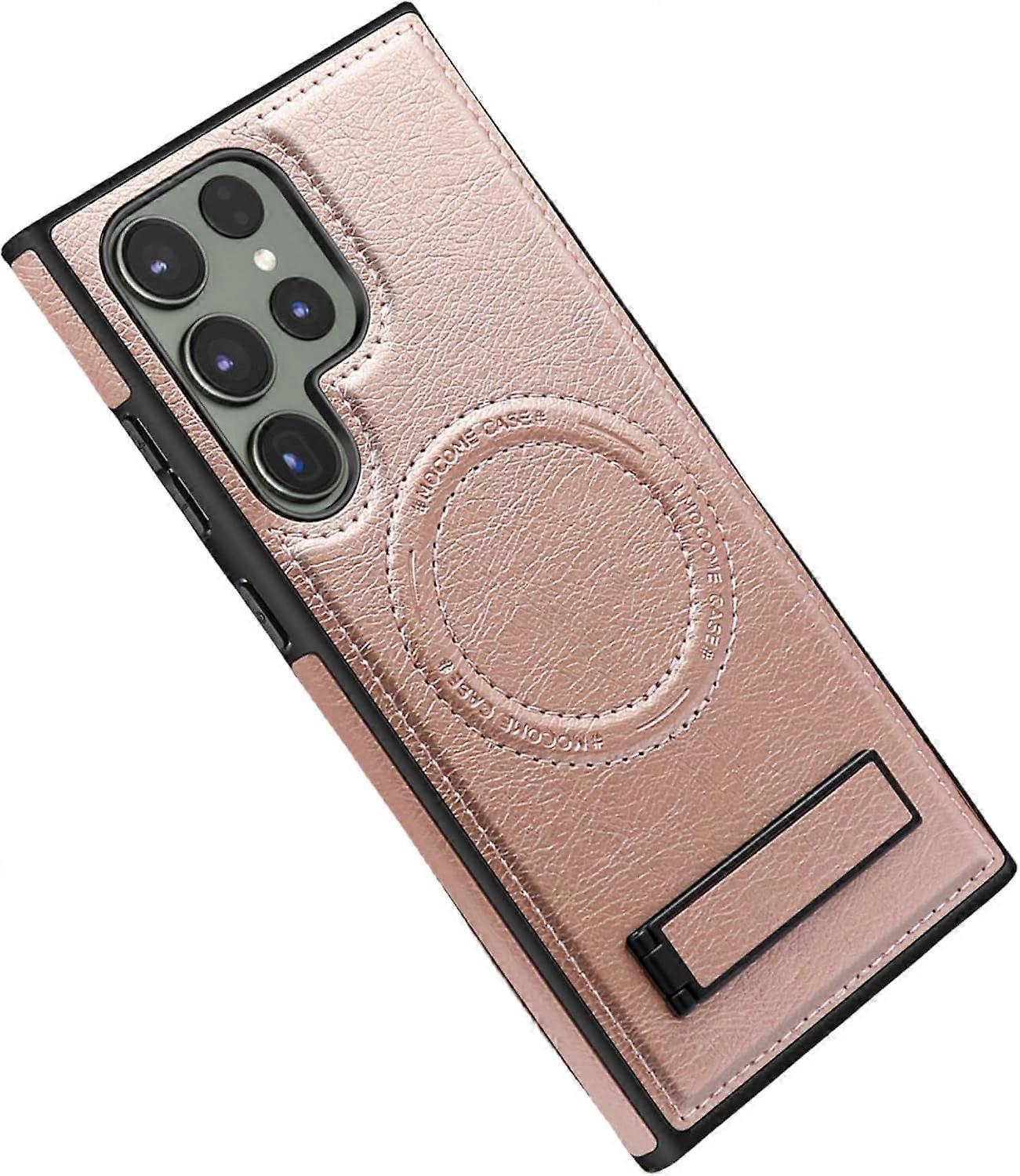 Faux Leather Magnetic Phone Case with Hidden Stand, Shockproof & Wear-Resistant, compatible with Samsung Galaxy S24/S23/S22 Ultra/Plus (Rose Gold,