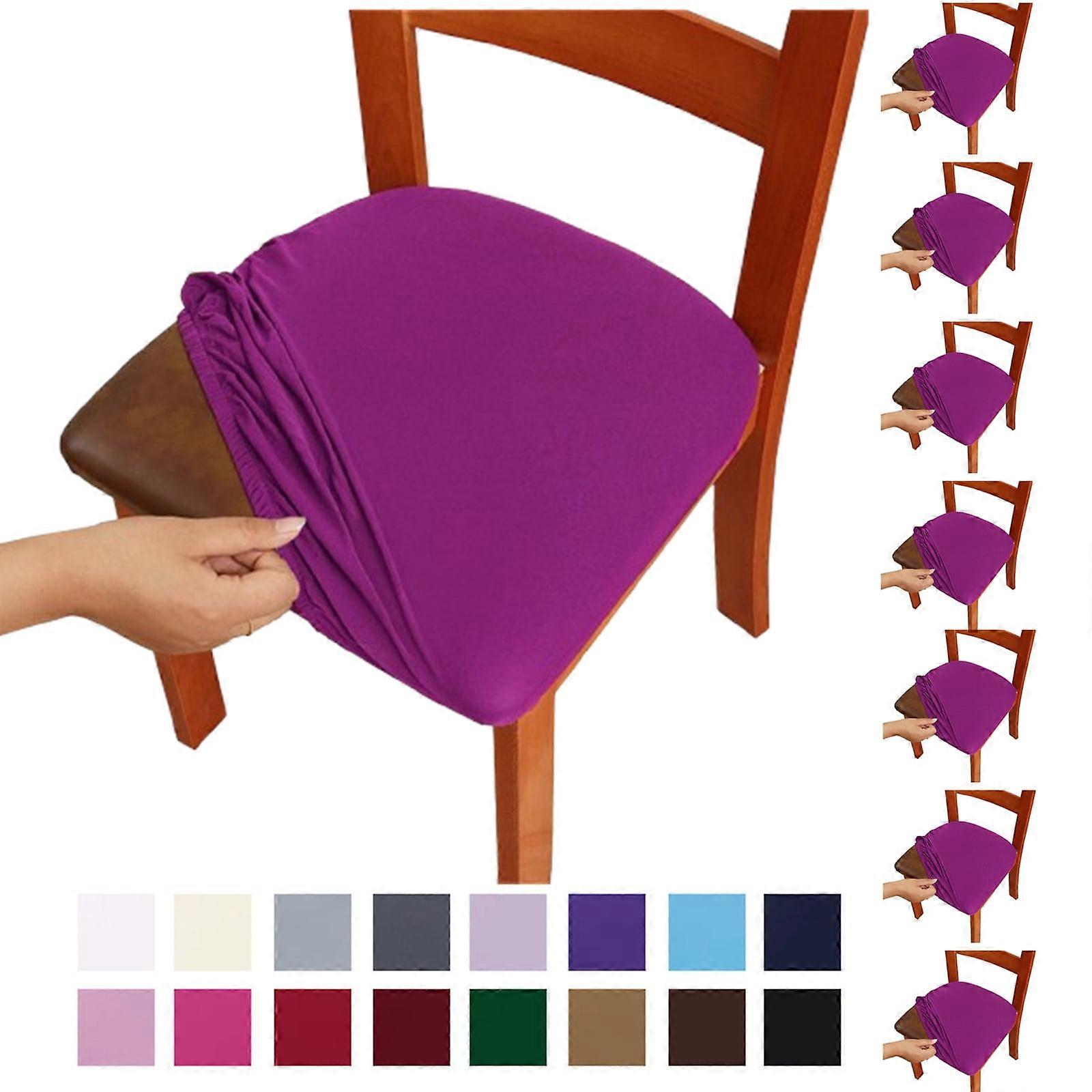 Seat Covers for Dining Room Chair Set of 8 - Stretch Fit Removable Washable Anti-Dust Desk Chair Seat Cushion Protectors - Purple Chair Covers