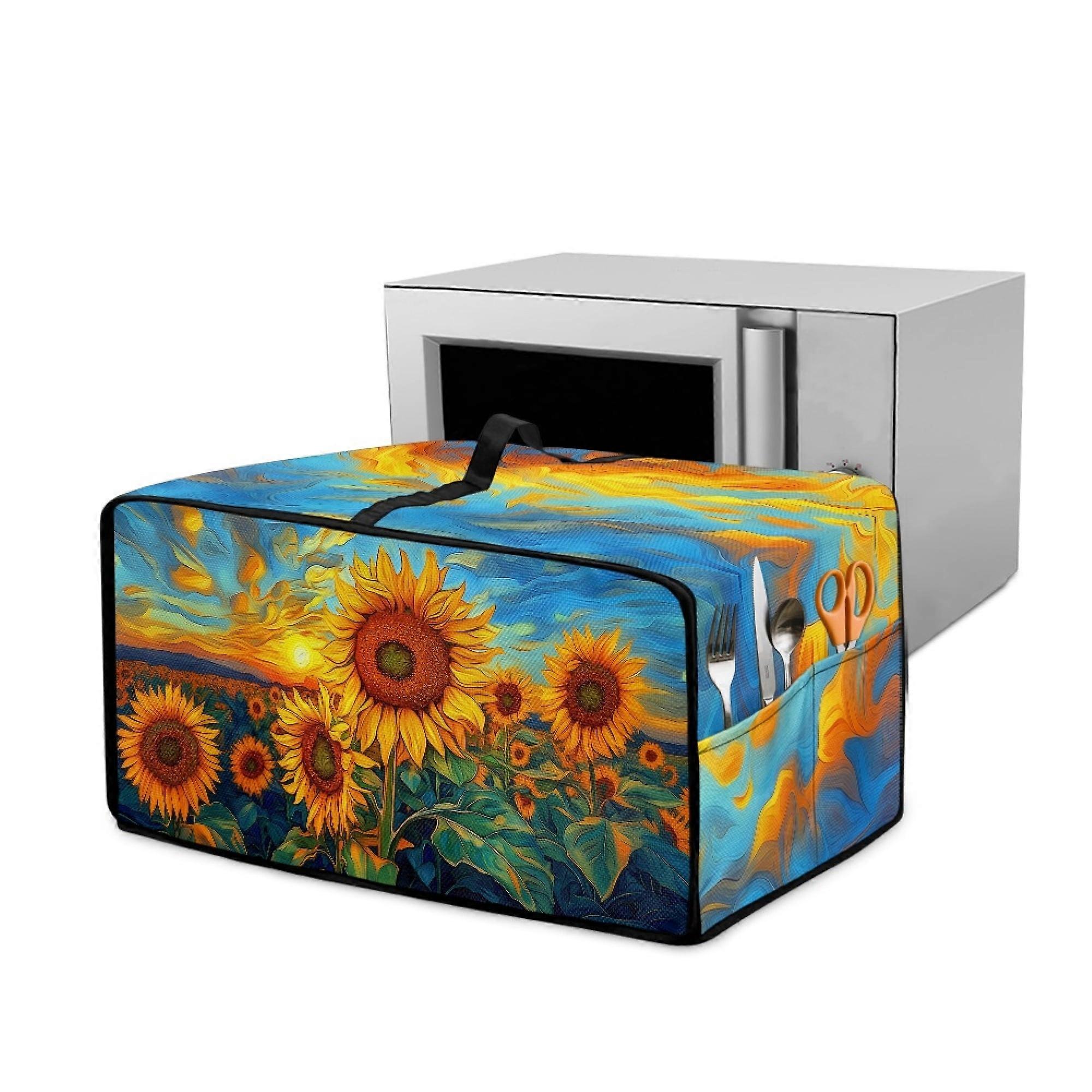 Sunflower Toaster Oven Cover, Dust-Proof Linen-Look Polyester Protector (18.5"x14.5"x9"), Compatible with Convection Ovens