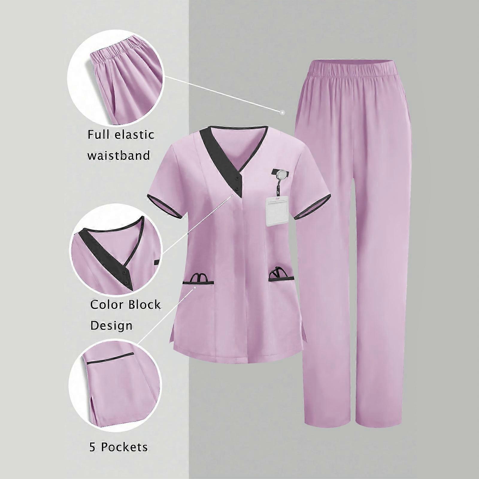 asdoklhq Scrubs for Women Set Women's Nurses Sets Tunic Uniform Clinic Carer V-Neck Protective Clothing and Pants Set Pink XL