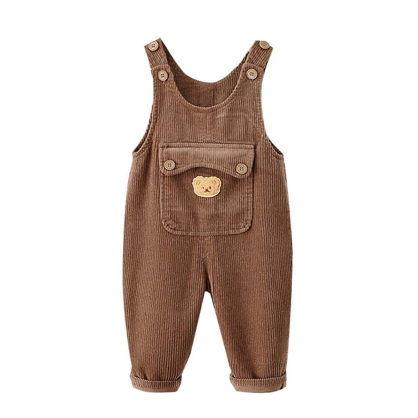 Baby Boys Girls Corduroy Bib Overalls Infant Toddler Corduroy Straps Outfits Pants Romper Jumpsuit with Pockets Coffee 1-2 Years