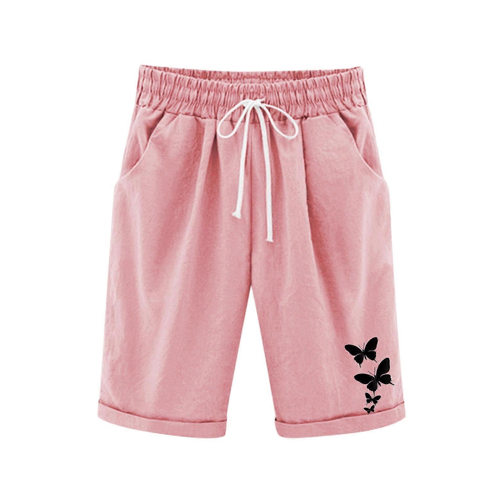 Girls Bermuda Shorts Knee Length Straight Leg Long Shorts Loose Casual Solid Drawstring Elastic Waist Short Pants Pink 3-4 Years