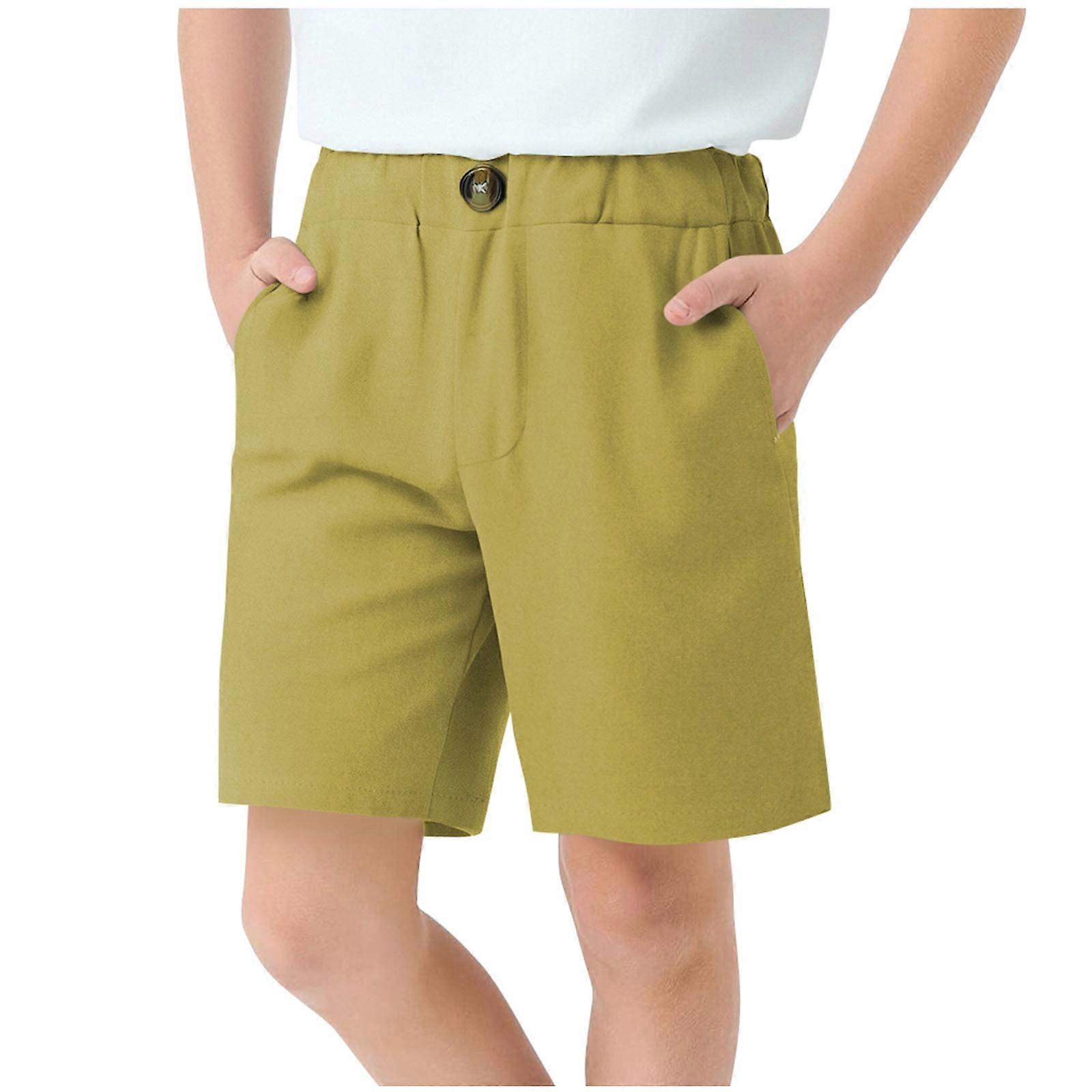 Boys School Uniform Shorts Stretch Pull On Chino Shorts Youth Cropped Shorts with Pockets Yellow 11-12 Years