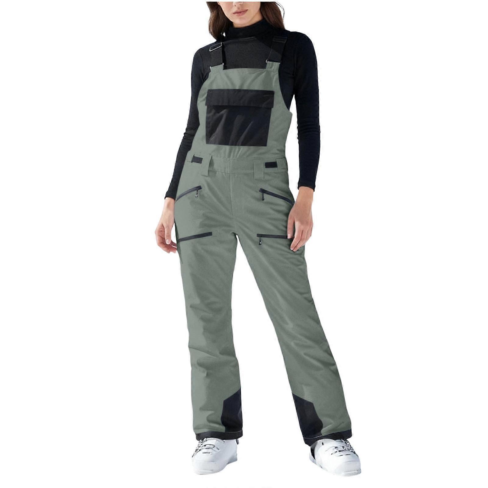 Womens Snow Pants Insulated Waterproof Winter Ski Bibs Overalls Snow Bibs Gray 2XL