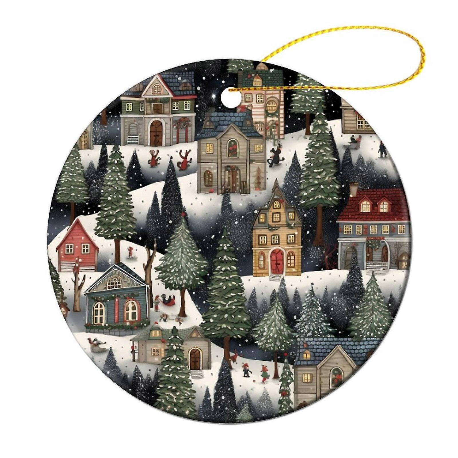 Victorian Christmas Village Ornament Winter Snow Scene Christmas Tree Ornaments Christmas Home Office Tree Decorations Gifts Keepsake for Family
