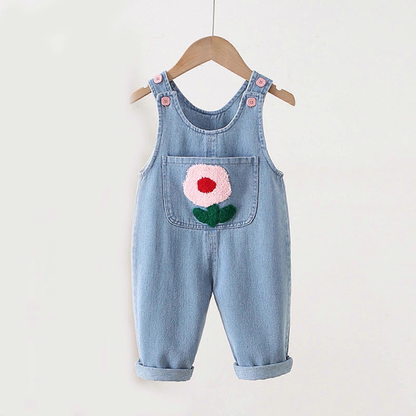 Baby Boys Girls Denim Bib Overalls Infant Toddler Denim Straps Outfits Pants Romper Jumpsuit with Pockets Blue 3-4 Years