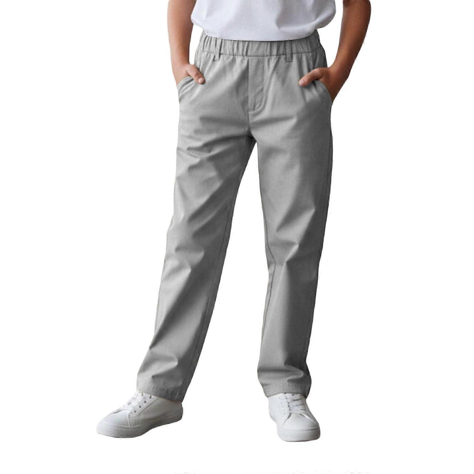 Boys' Grey Stretch Chino Pants with Pockets – Pull-On Uniform Pants for Back to School, Teens 12-13 Years