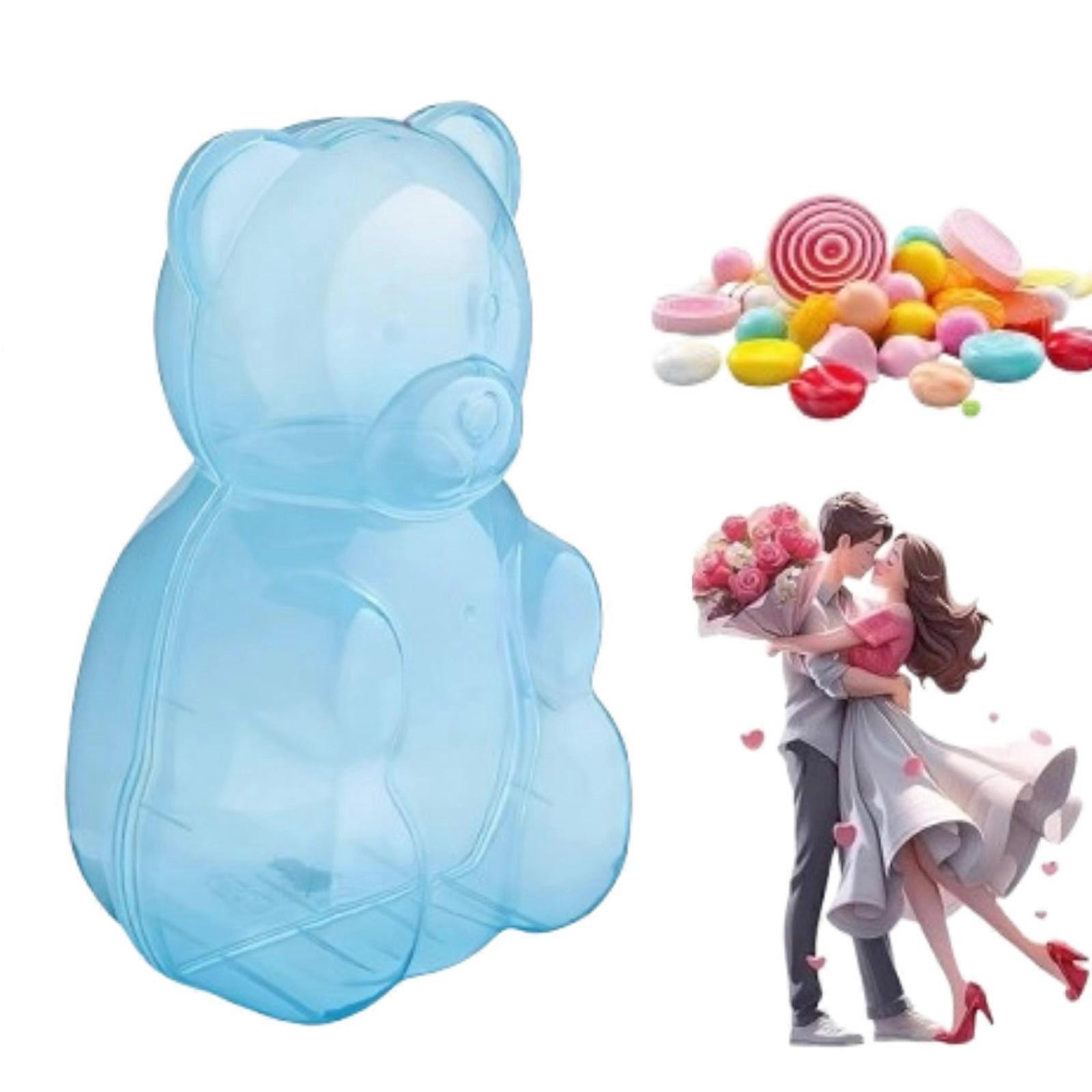 Reusable Gummy Bear Shaped Container - Clear Plastic Candy Holder for Valentine's Day, Home Snack Storage & Party Treat Displays Blue