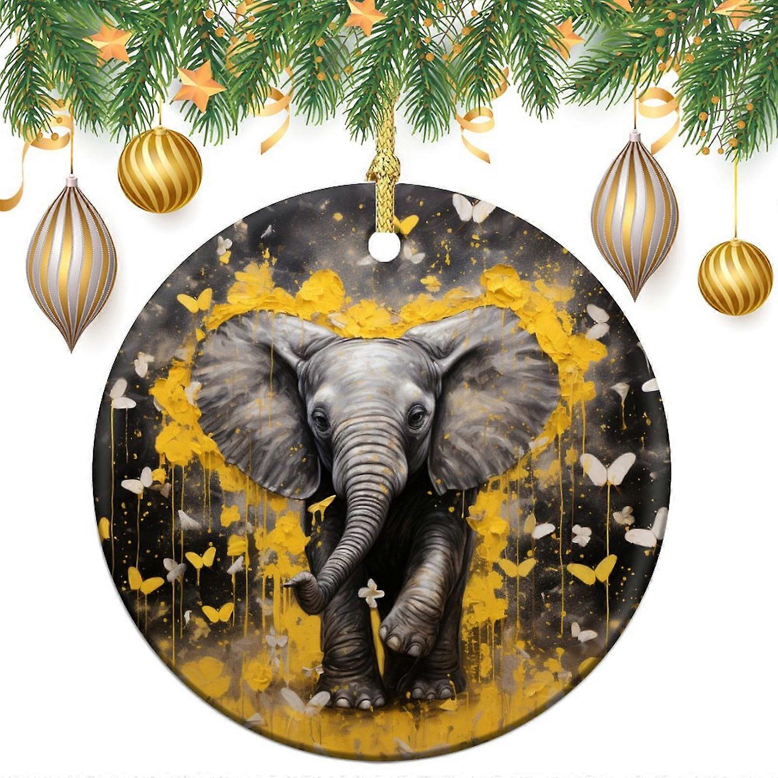 Christmas Ornament Animal Cute Elephant Christmas Tree Ornaments Baby Elephant With Yellow Butterflies Best Gifts for Christmas Xmas Gift