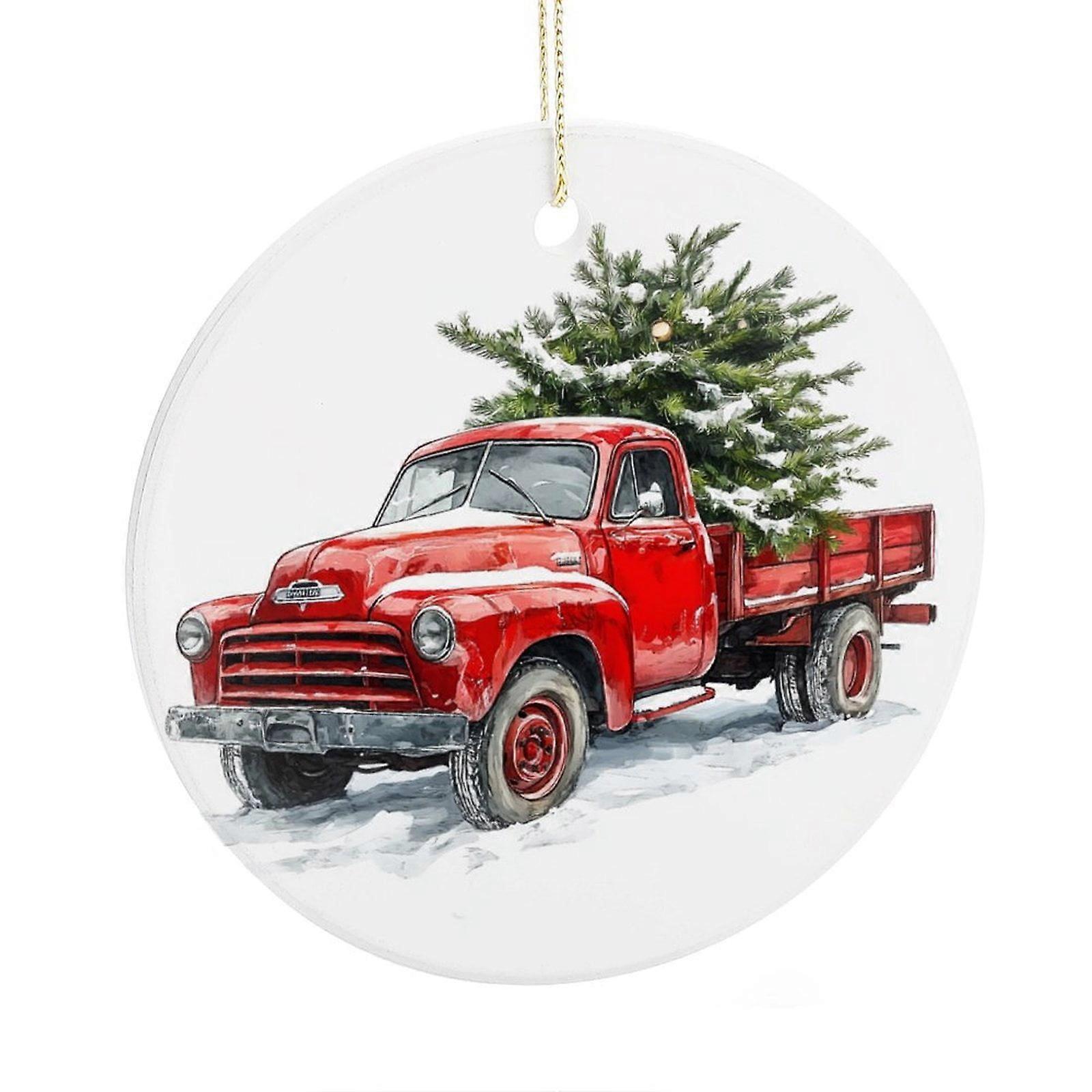 Vintage Red Truck with Christmas Tree Ceramic Ornament Merry Christmas Red Truck Car with Xmas Tree Christmas Decor Ceramic Ornament Customized Ceramic Xmas Tree Decor The funny christmas ornaments is specially designed; it will be the great Christmas Gift Perfect for giving a funny expression to friends who will not have a good life in 2023 These ornaments are beautifully painted with intricate designs that capture the spirit of Christmas. The timeless ceramic material ensures they will be cherished for years to come. Decorate Christmas tree with your family. Kids will be happy with this ornament, a great fun holiday activity. With this double side printed Christmas ornament, so that no matter which way the Christmas ornament is facing, you will see the design and the inscription. Give the gift of warmth. These ornaments make an ideal present for your loved ones, friends, family, or colleagues. Porcelain Material: High quality of Ceramic surface,nvironmentally friendly ceramic. Size: 3 inches in diameter.Comes with 1-Round ceramic ornament and 1*Golden String. Double-sided printed:Using premium print is long-lasting and creates colorful, vibrant, bright designs from creative artwork. Christmas Tree Decorations: Liven up your Christmas spirit with this Xmas Holiday Decor stunning Christmas tree decor. It will be a surprise to give this Christmas gift and create unforgettable Christmas decorations for your loved ones! Moreover, this unique ornament also makes cozy tree decor for your house. Perfect Gifts: Xmas Tree Winter Holiday Christmas Christmas Ornaments Excellent for mom, dad, son, daughter, brother, sister, uncle, aunt, grandma, grandpa, friend, spouse, husband, wife, boyfriend, girlfriend, mother, father, in-law, co-worker, or anyone to just wish them well and also give them something to chuckle about these unfortunate times.