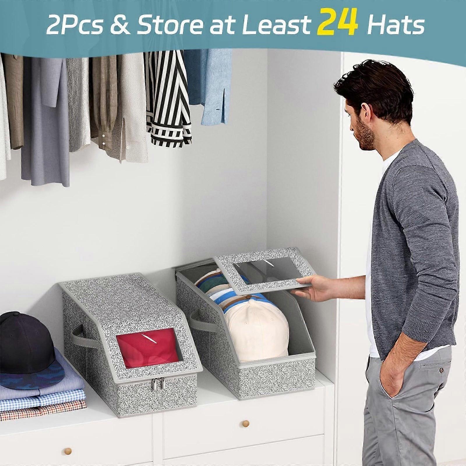 Hat Storage Box Large Capacity Stackable, Baseball Cap Organizer with Clear Lid, Multifunctional for Closet, Dorm, Travel, Men’s Accessory Storage