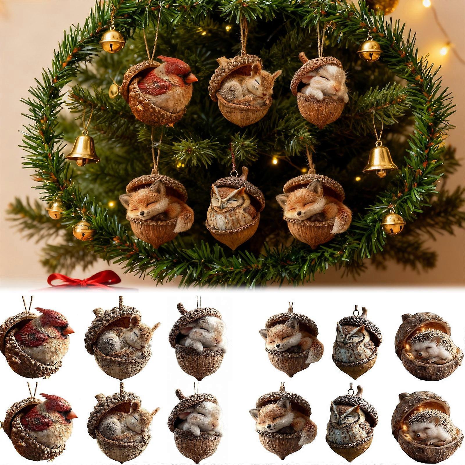 2Pc Owl 3D Forest Animal Acorn Ornaments – Cozy Sleeping Forest Christmas Decor, Handcrafted Resin Hazelnut Ornaments, Compatible with Christmas