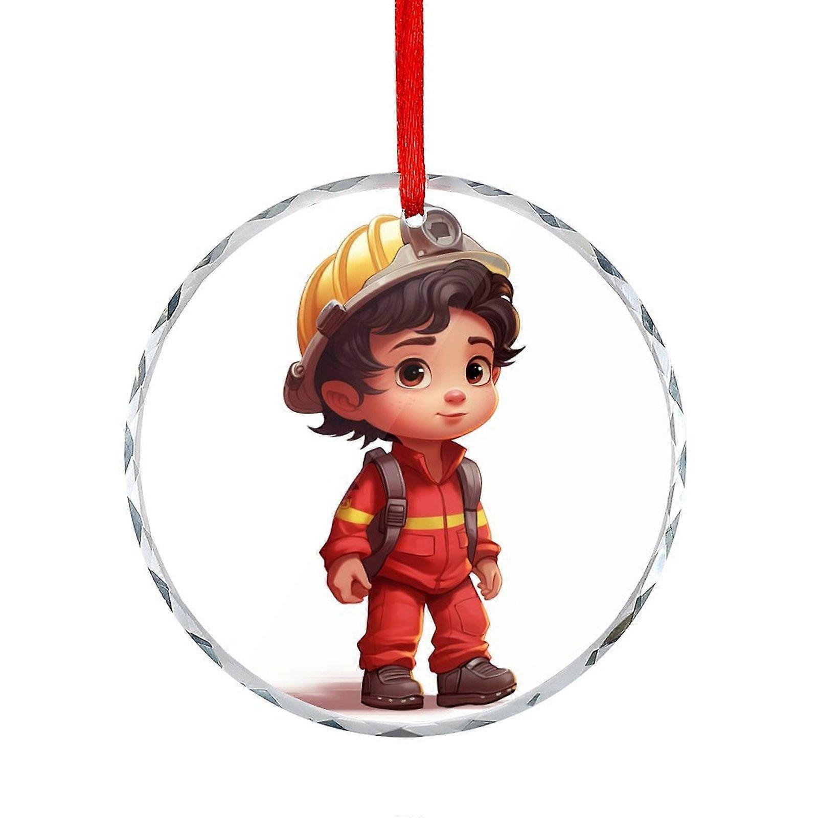 Cute Cartoon Firefighter Brunette Boy Ornament Appreciation Gifts Ornaments for Xmas Tree Fireman Baby Boy Christmas Glass Decoration